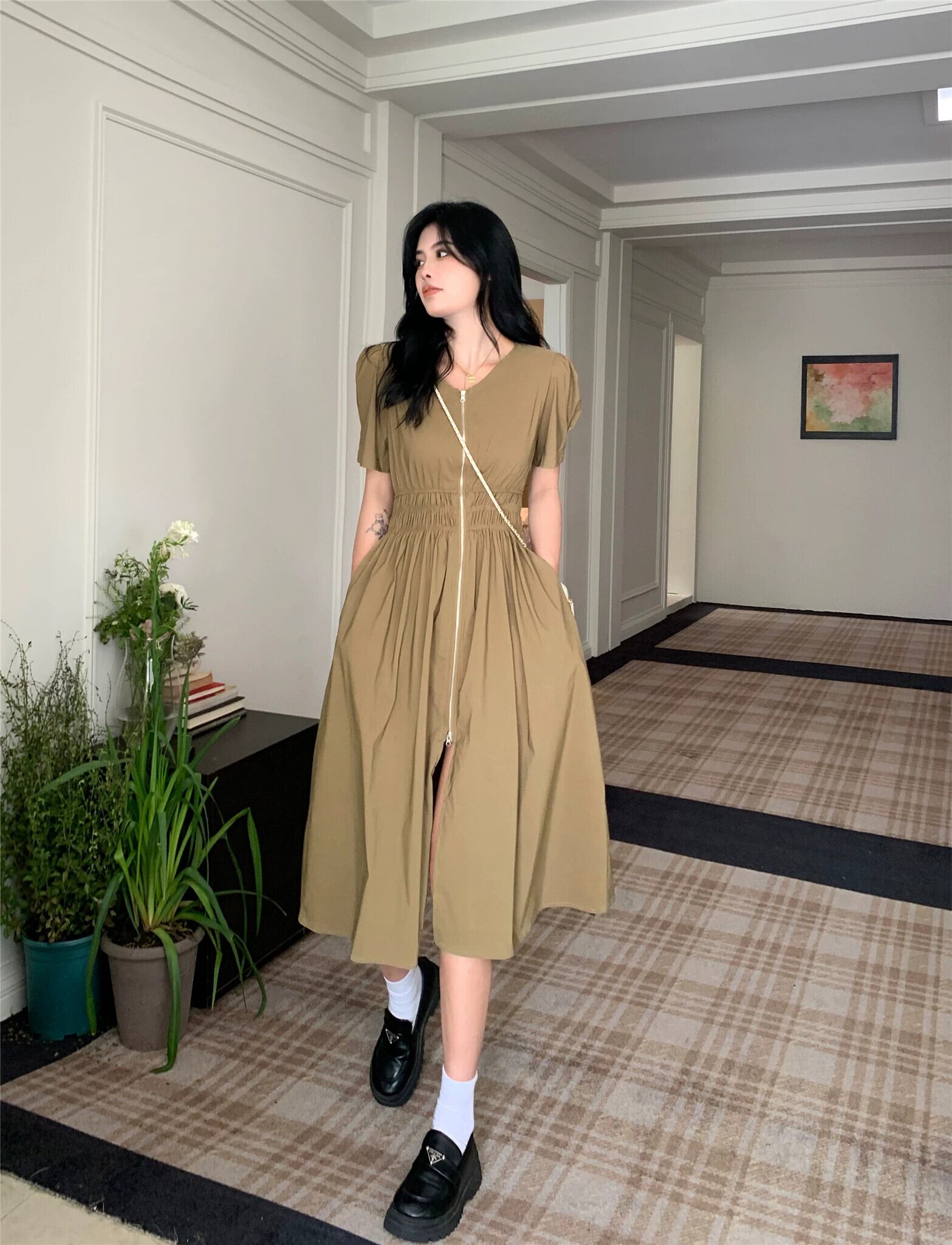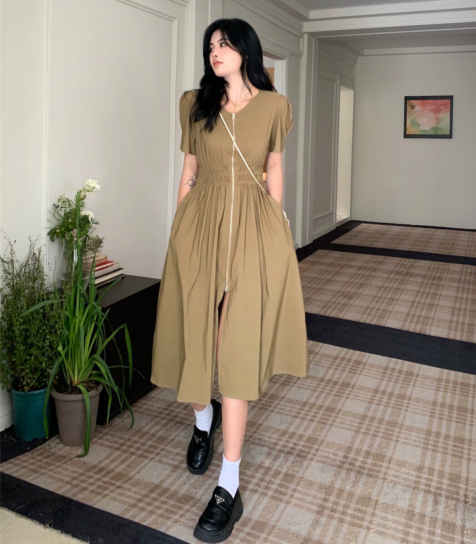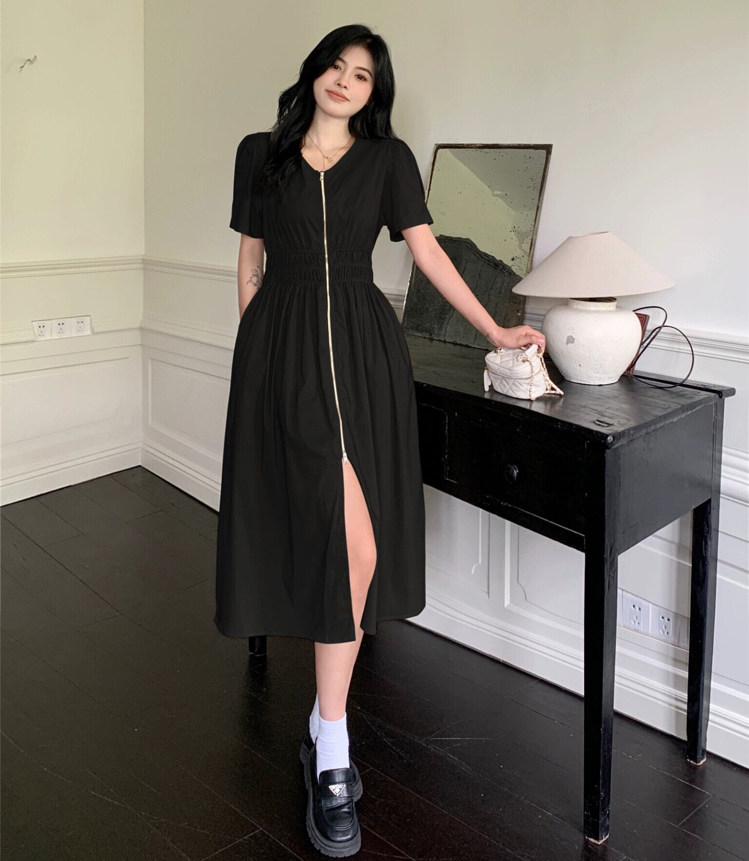 プラスサイズの婦人服 2023 脂肪姉妹夏服新ファッション痩身ロングスカートデザインジッパーヘップバーンスタイルドレス 大きめサイズ サマー 夏物 8884114069427928