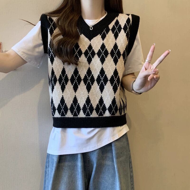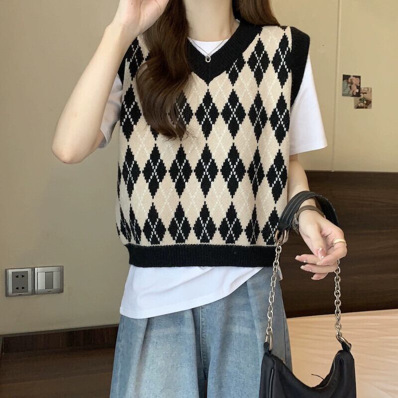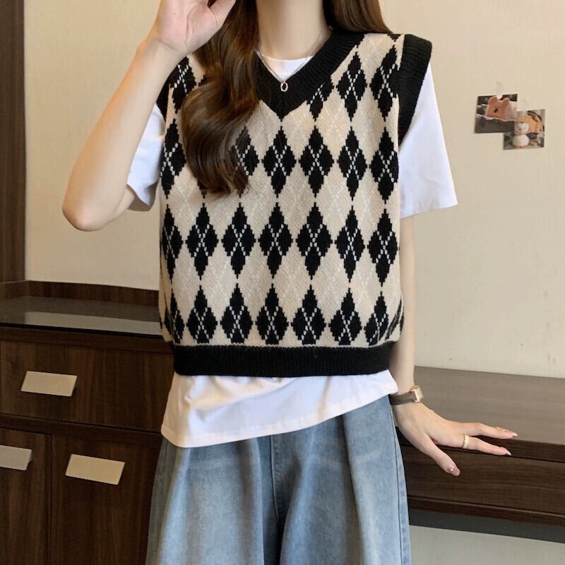 プラスサイズの婦人服 2023 トレンディな秋の新スタイルファットハイエンドベストベストルーズボディカバー年齢を軽減する多用途トップ 大きめサイズ オータム 秋物 8884132343775388