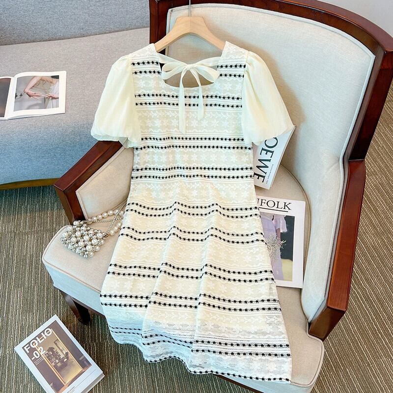 プラスサイズの女性の 2023 夏服気質と年齢を軽減するデザインセンスの太い A ライン スカート中空多用途ルーズ ドレス 大きめサイズ サマー 夏物 Aライン 8884189197913980