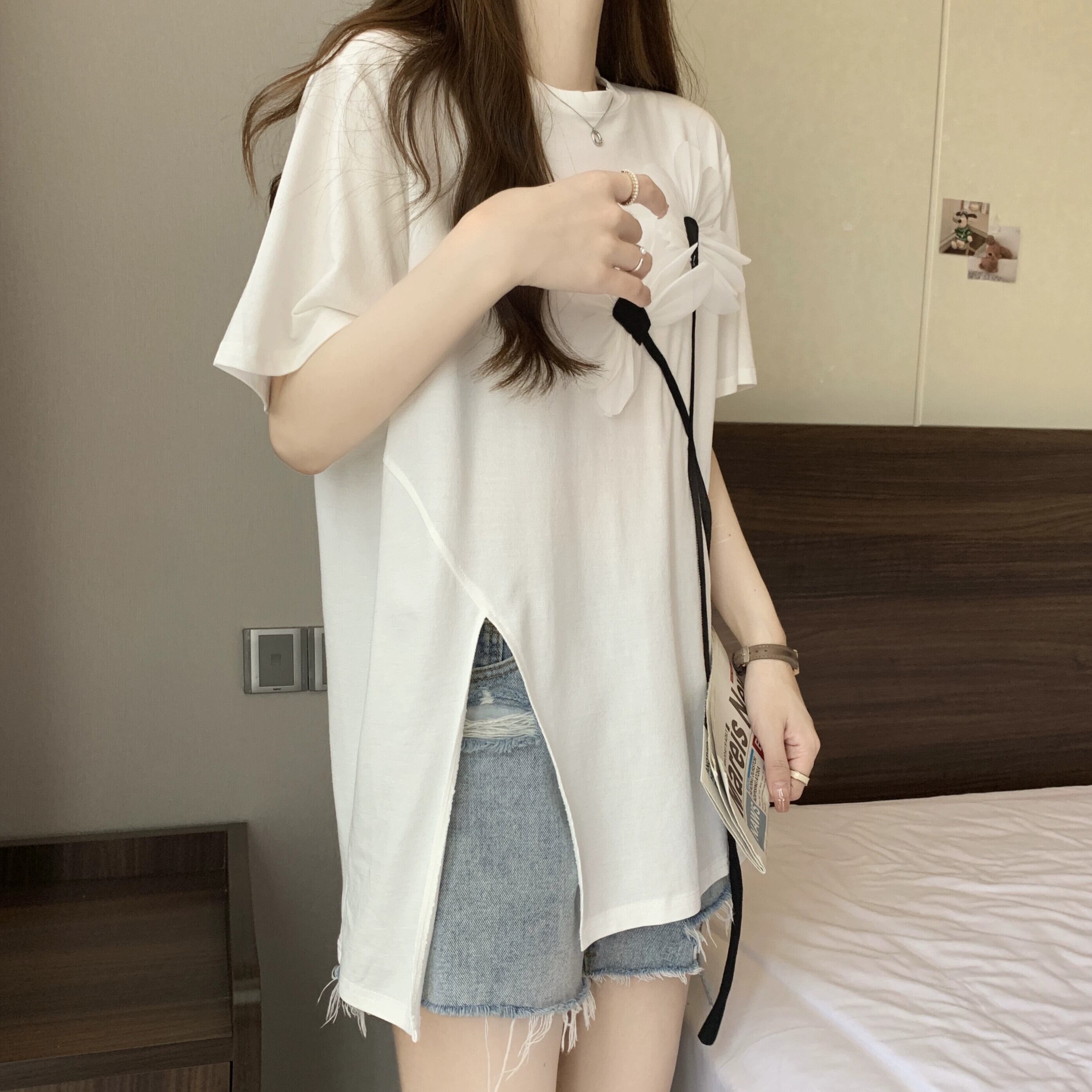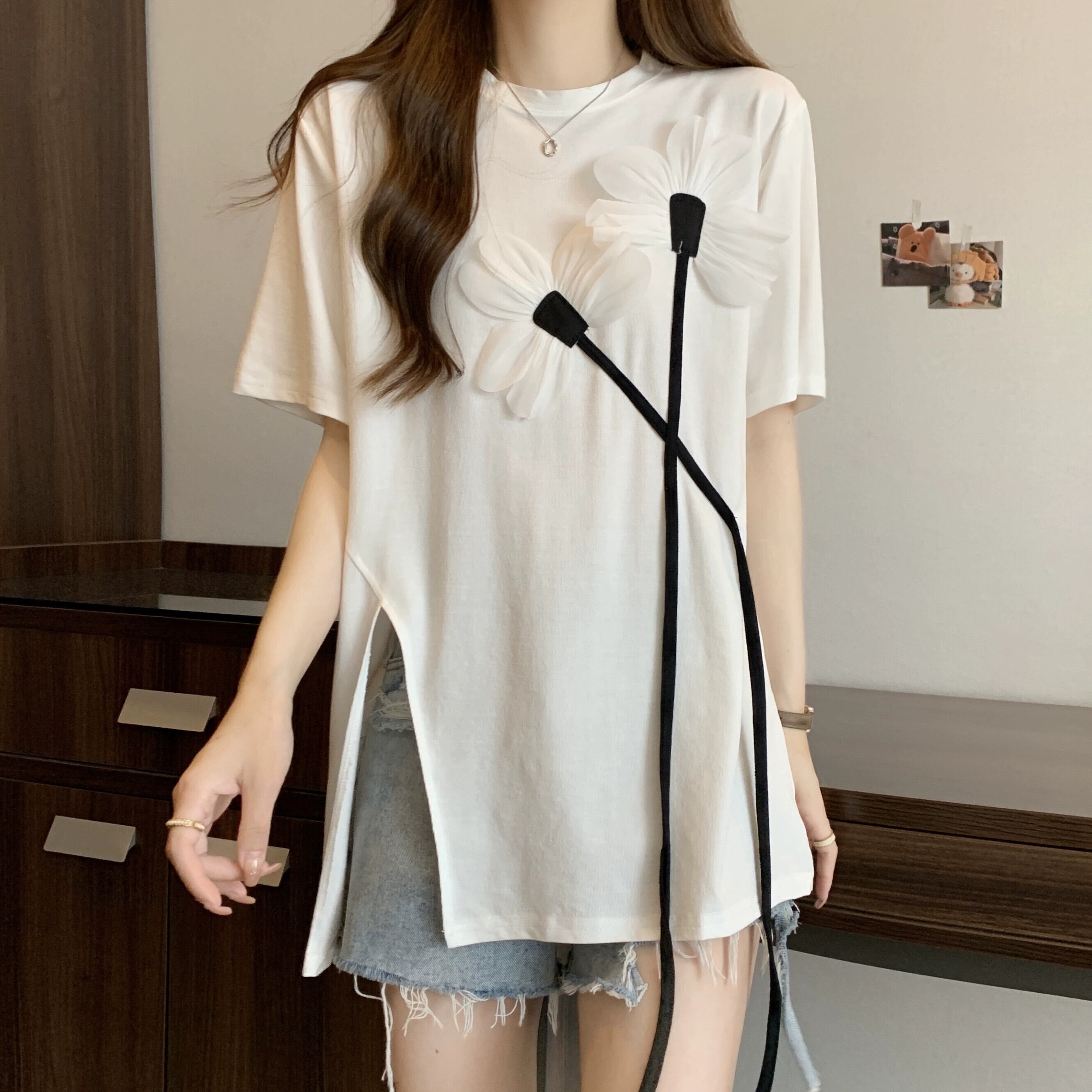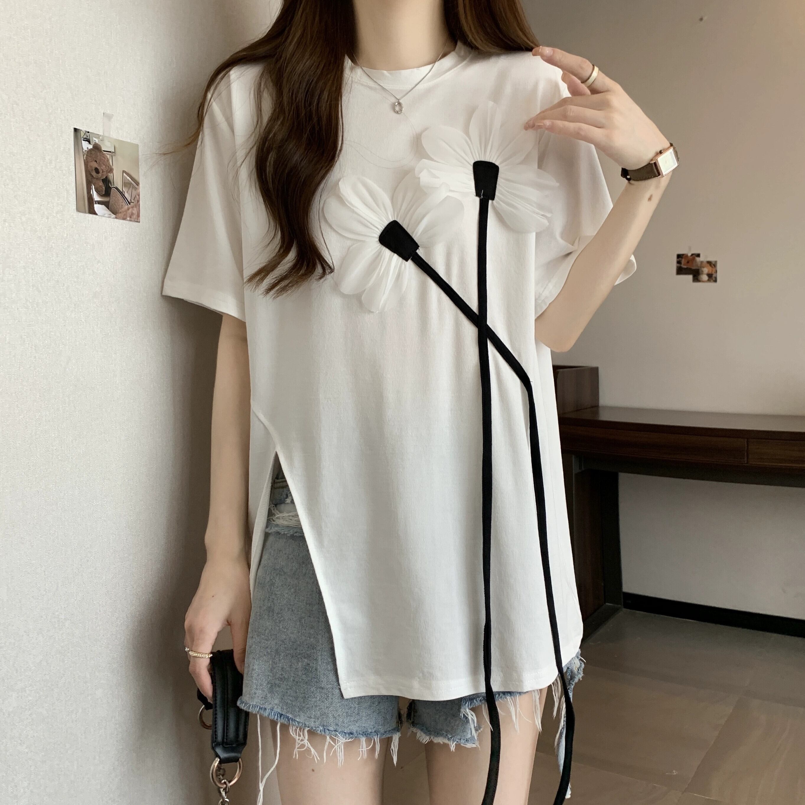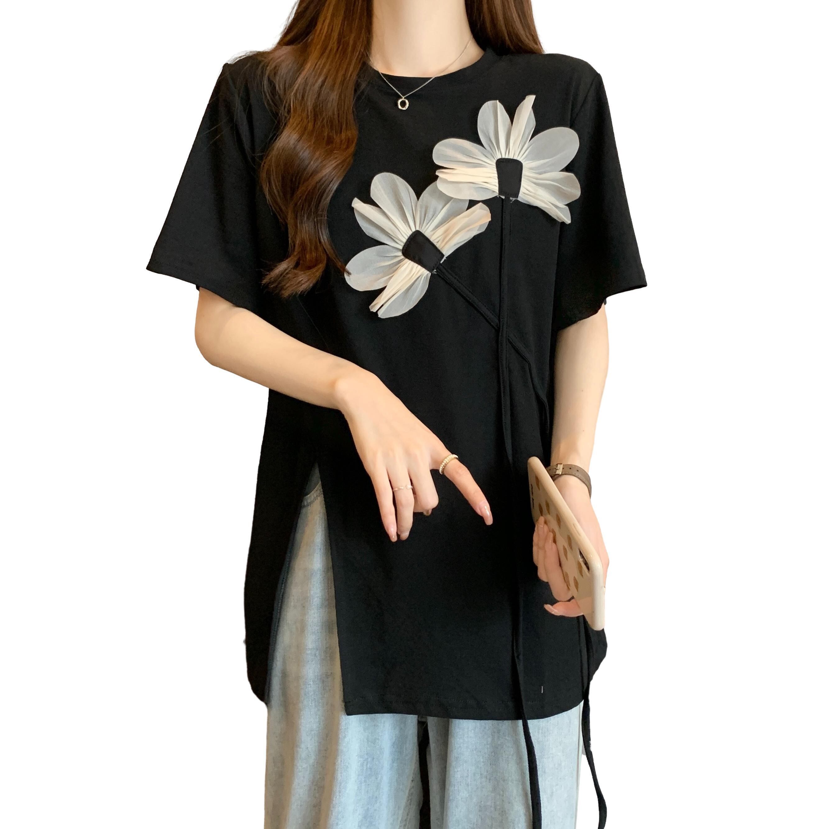 プラスサイズの婦人服 2023 ファットシスター夏新スタイルルーズ三次元メッシュデザイン不規則な半袖 Tシャツトップ 大きめサイズ サマー 夏物 8884175790121273
