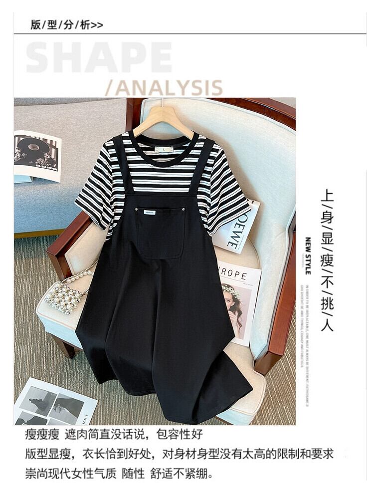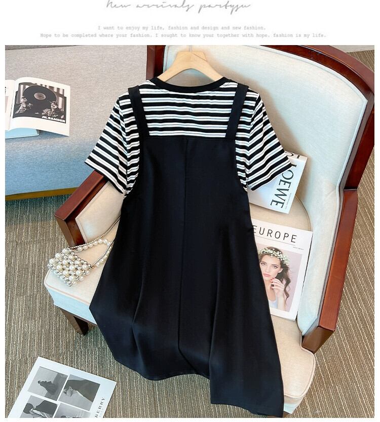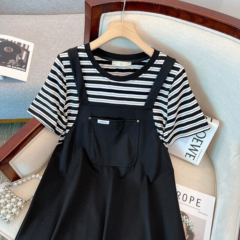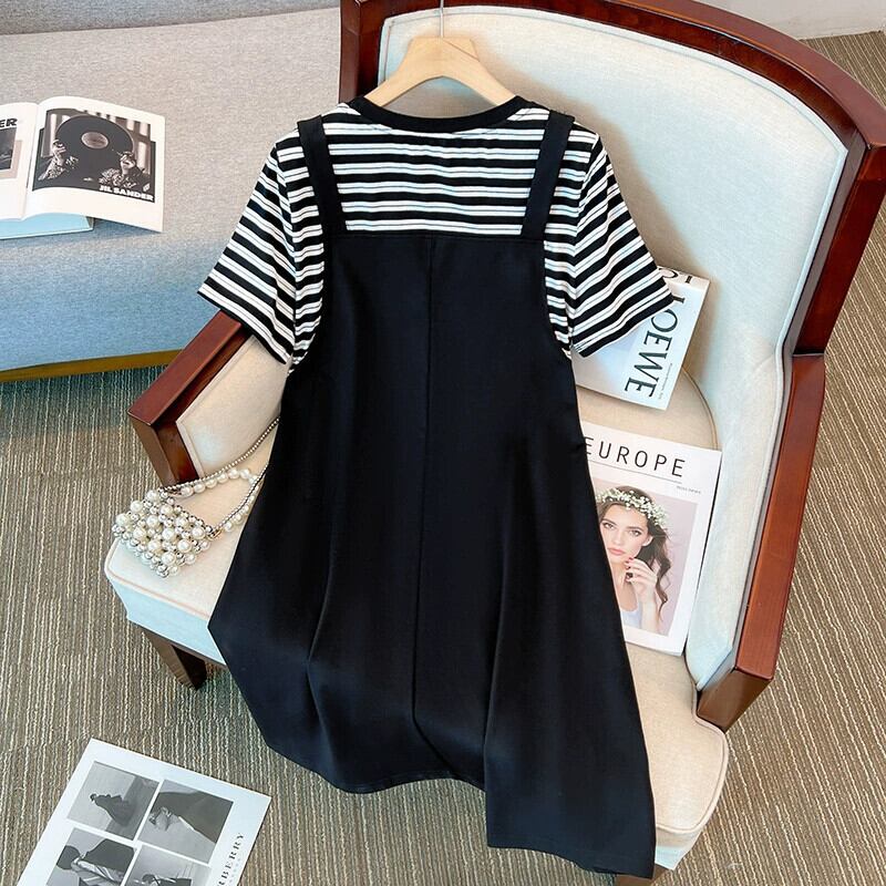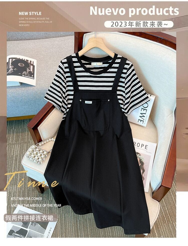 プラスサイズの婦人服 2023 夏服脂肪の新しいファッション痩身と年齢を減らすミッドレングススカートスプライシング偽ツーピースドレス 大きめサイズ サマー 夏物 8884183419154273