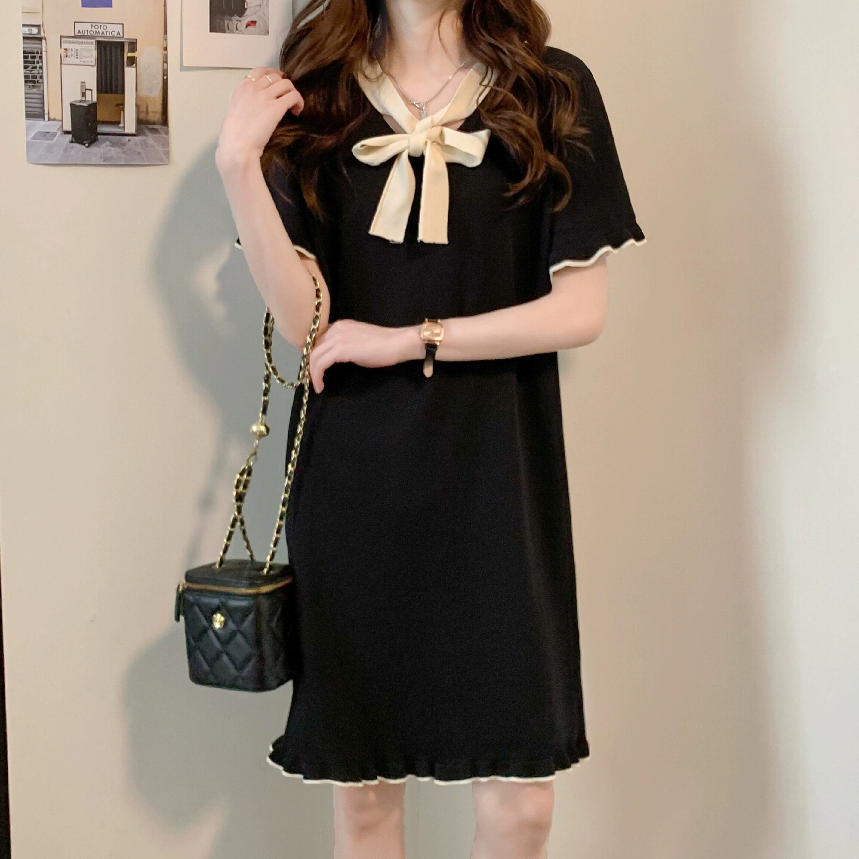 プラスサイズの女性の 2023 夏服太った、真菌エッジが付いた多用途なフランスの年齢を減らすドレス、ファッショナブルな気質の A ライン スカート 大きめサイズ サマー 夏物 Aライン 8884153231445093
