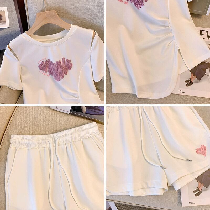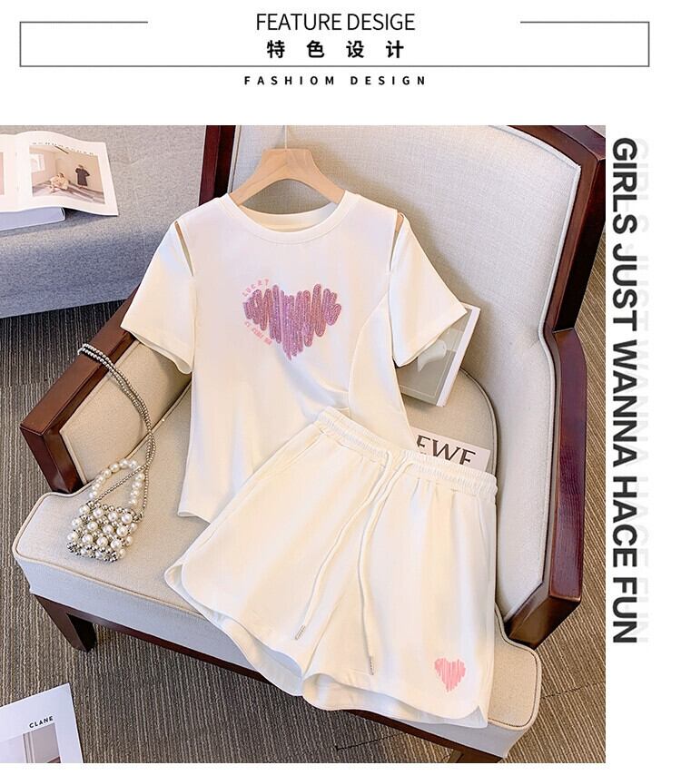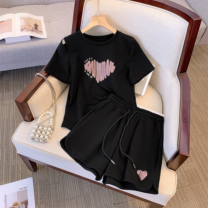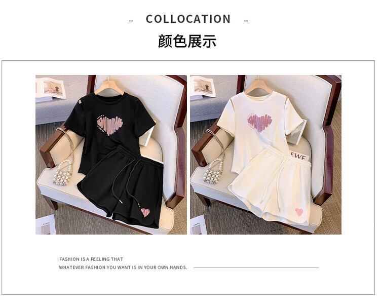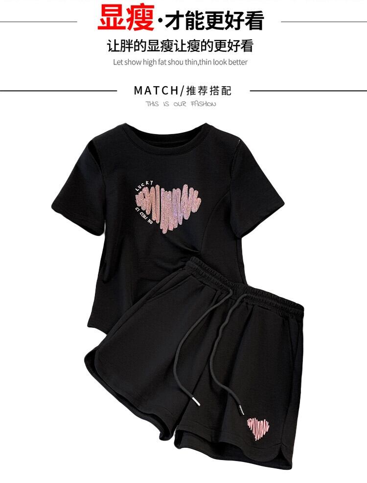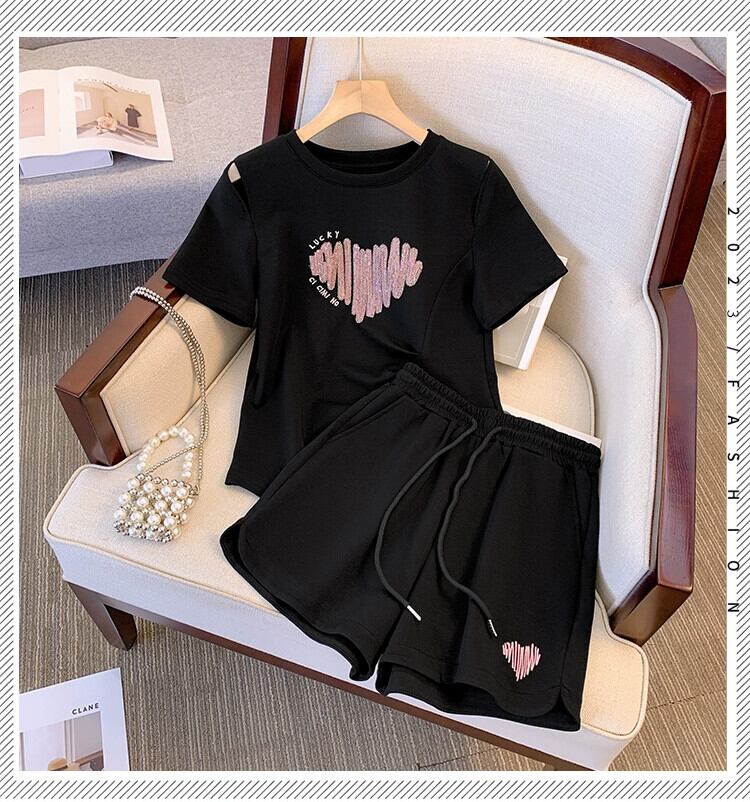 プラスサイズの女性の 2023 ファットシスター夏服プリント Tシャツルーズショーツスーツスリムと西洋スタイルのツーピースセット 大きめサイズ サマー 夏物 ブルマー 8884190316659070