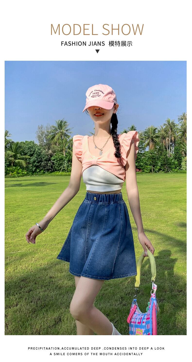 プラスサイズの女性の 2023 夏服脂肪ハイウエスト痩身ヒップカバー A ラインスカートデザインファッショナブルなデニムスカート ハイウェスト 大きめサイズ サマー 夏物 Aライン 8884119801182445