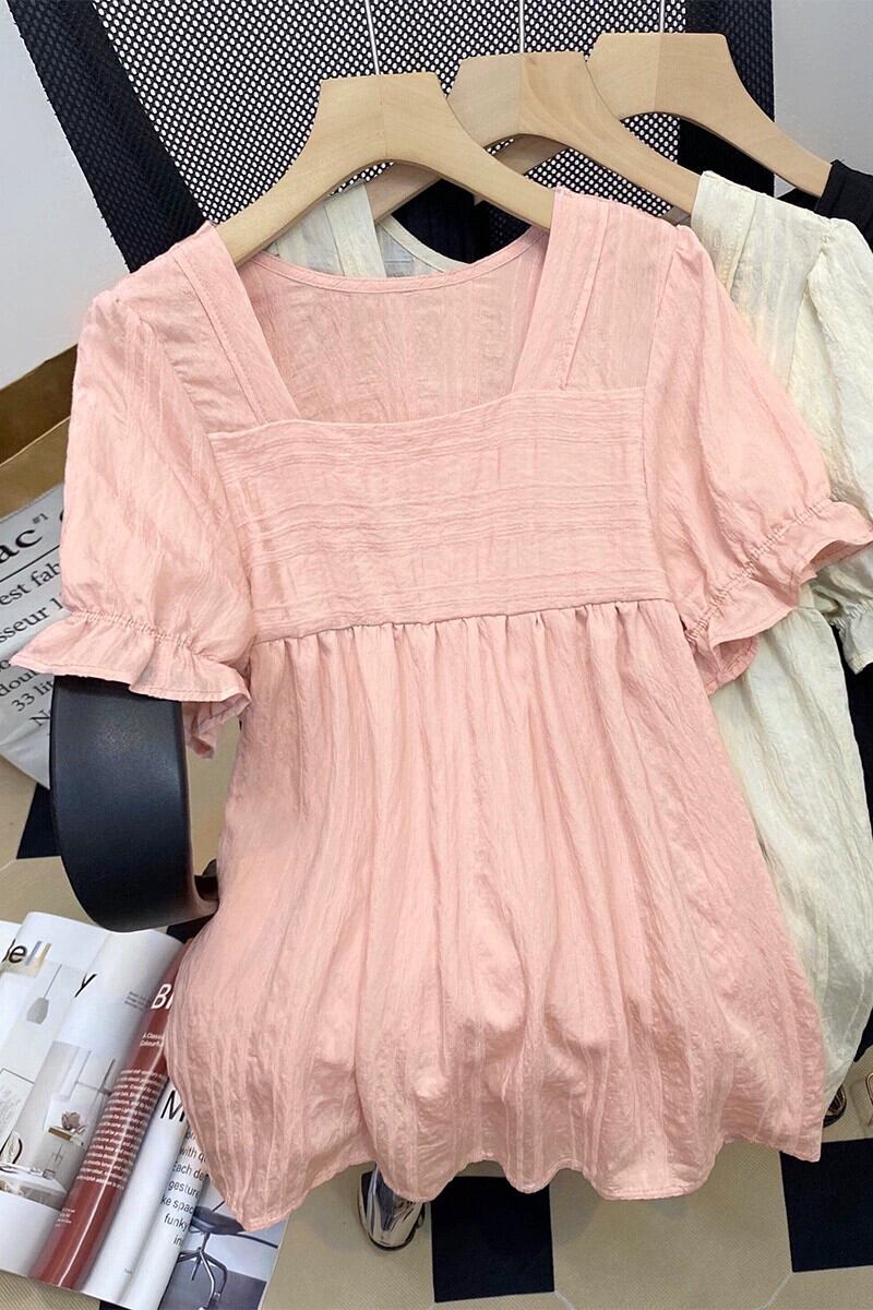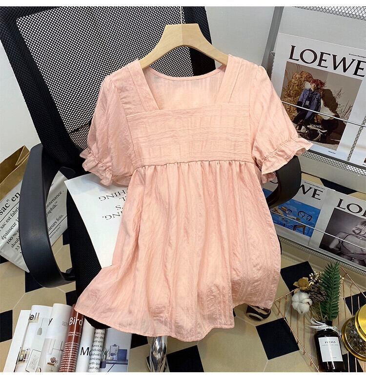 プラスサイズの婦人服 2023 流行の夏の新しいファットシスター年齢軽減デザインシャツファッショナブルなスリムスクエアカラーフレンチトップ 大きめサイズ サマー 夏物 スクウェア 8884143844580594