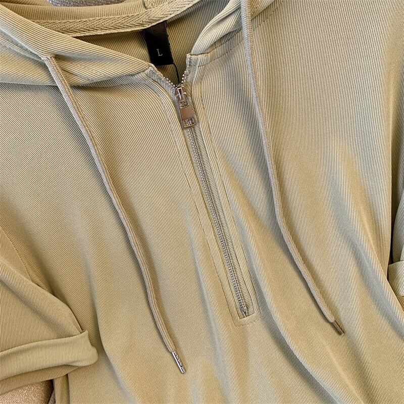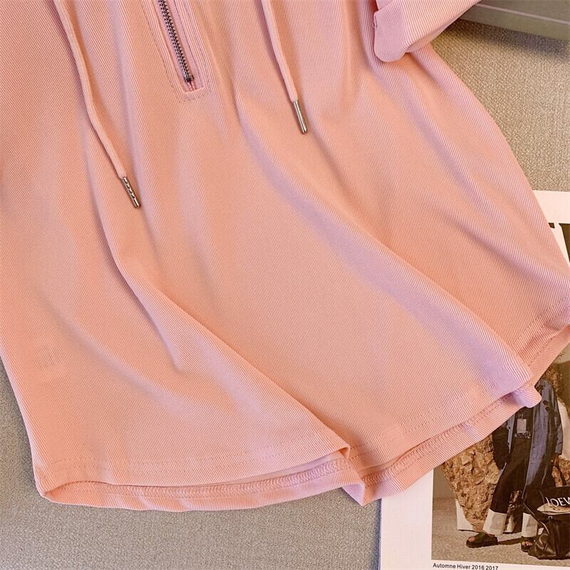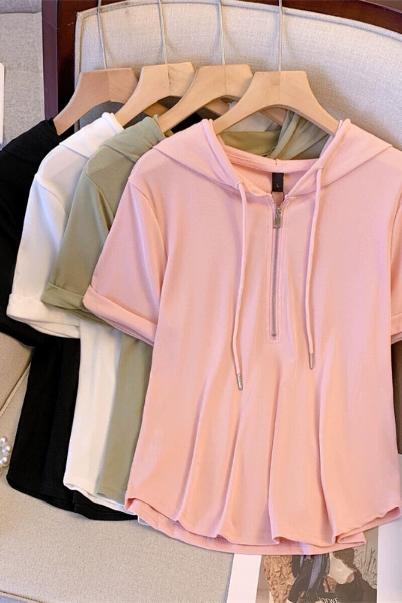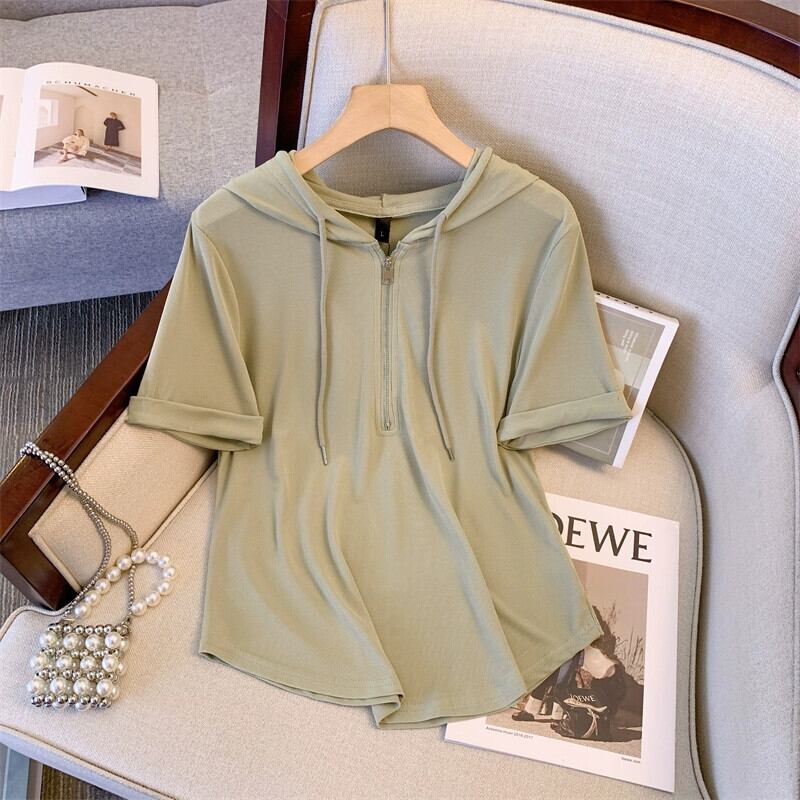 プラスサイズの女性の 2023 夏服太ったファッショナブルでスタイリッシュなフード付き半袖トップス、お腹をカバーする無地のルーズトップス 大きめサイズ サマー 夏物 ソリッドカラー 8884195536189403