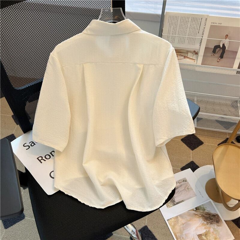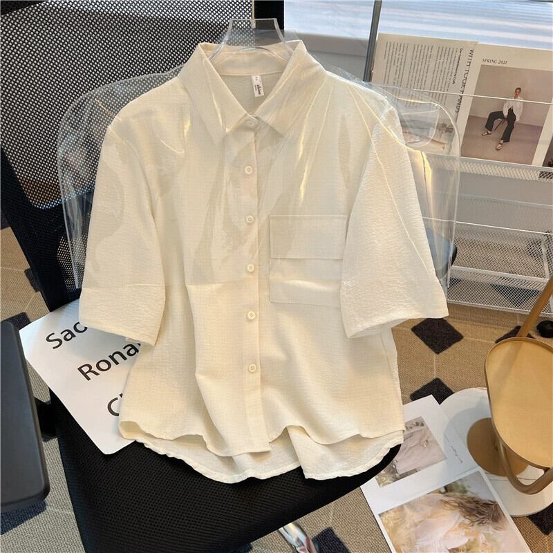 プラスサイズの女性の 2023 夏服脂肪痩身ルーズ半袖シックなシャツ腹をカバーシングルブレストカジュアルトップス 大きめサイズ サマー 夏物 8884116979865254