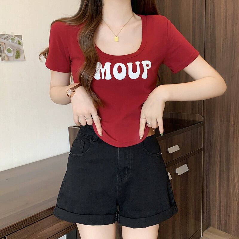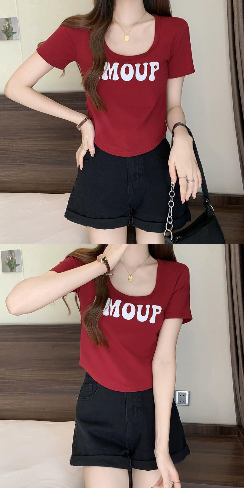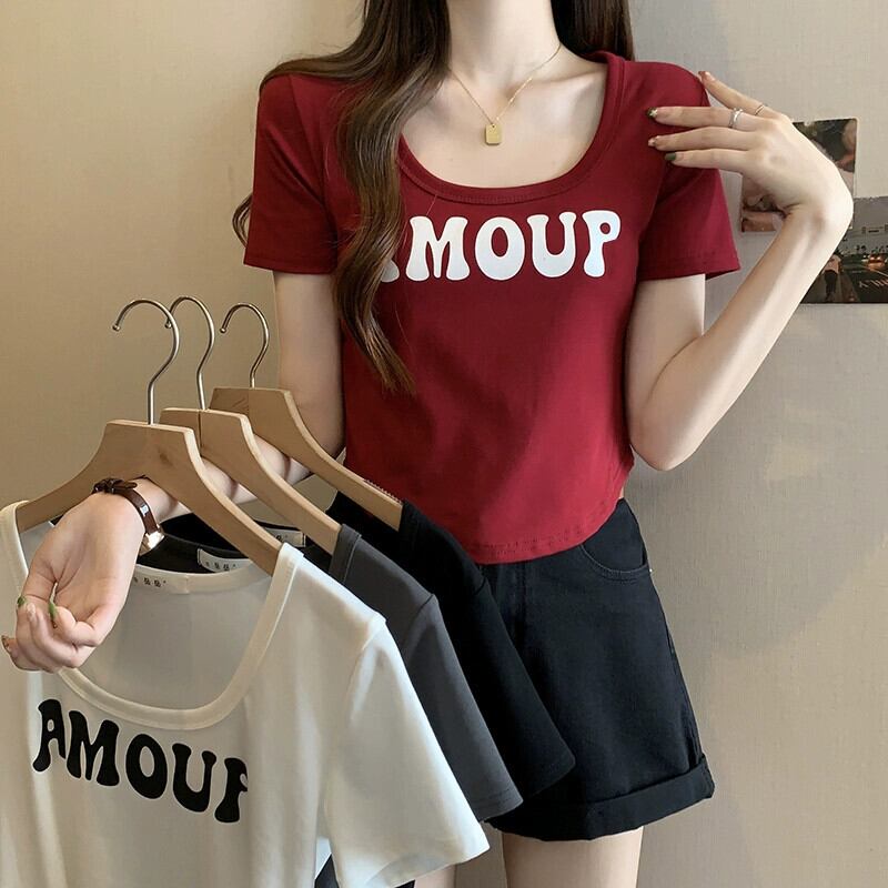 プラスサイズの婦人服 2023 ファットシスター夏服新しいアメリカンデザイン痩身レタープリント半袖 Tシャツトップ 大きめサイズ サマー 夏物 8884159055649885
