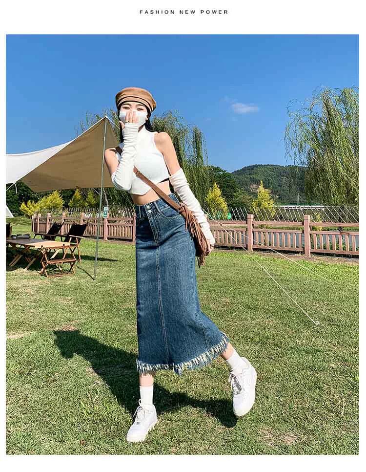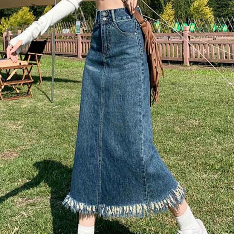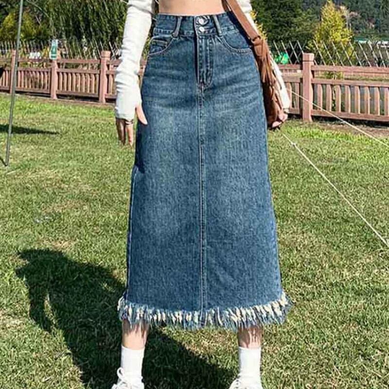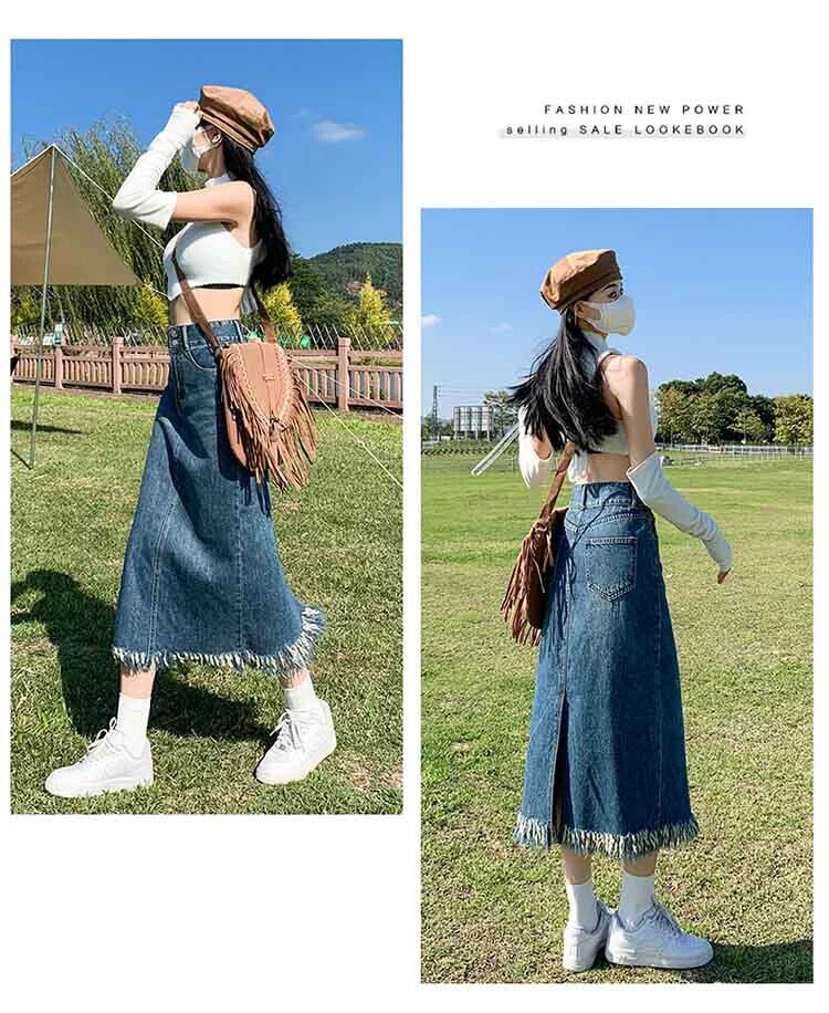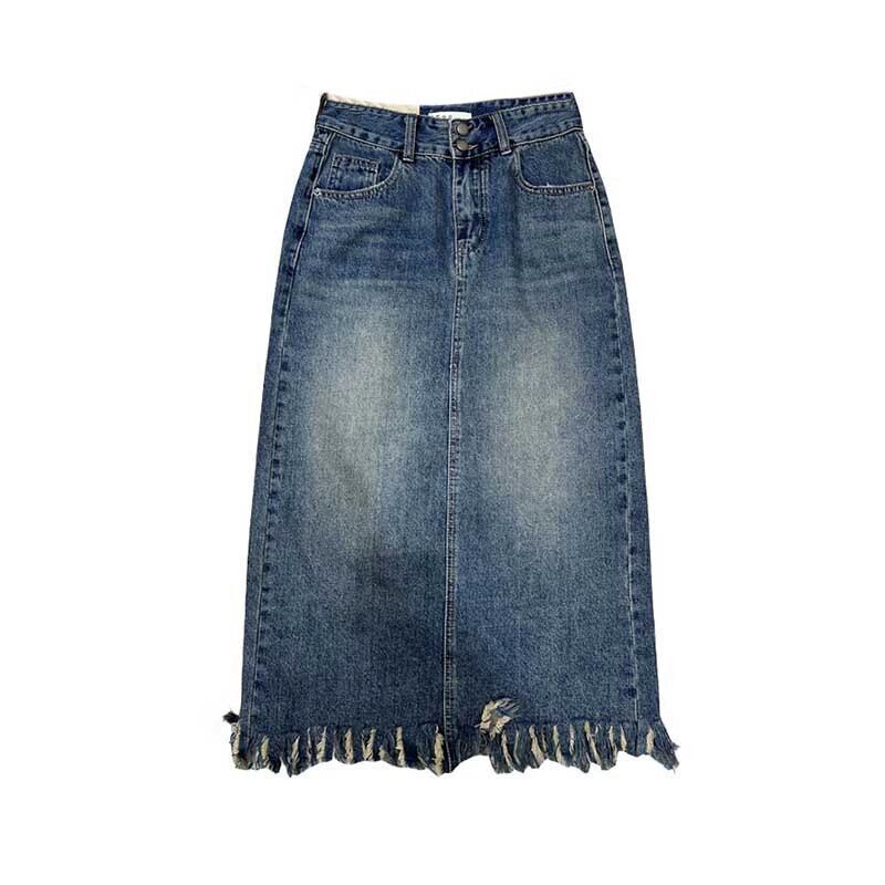 プラスサイズの女性の 2023 夏服気質生エッジハイウエスト A ラインスカートデザイン痩身デニムスカート ハイウェスト 大きめサイズ サマー 夏物 Aライン 8884118787955628