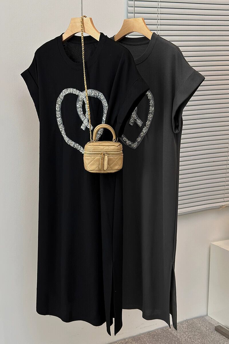 プラスサイズの女性の 2023 ファットシスター夏服 Tシャツドレス三次元愛ロールスリーブドレス 大きめサイズ サマー 夏物 8884192039205565