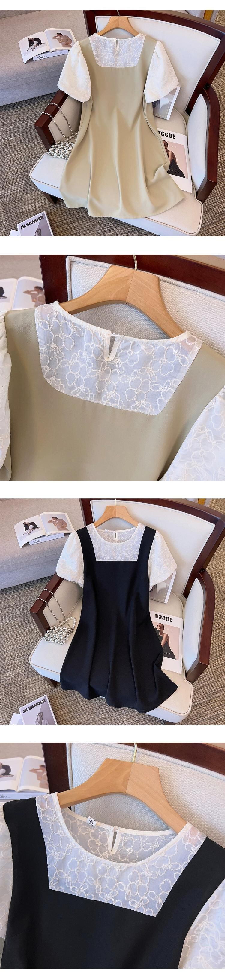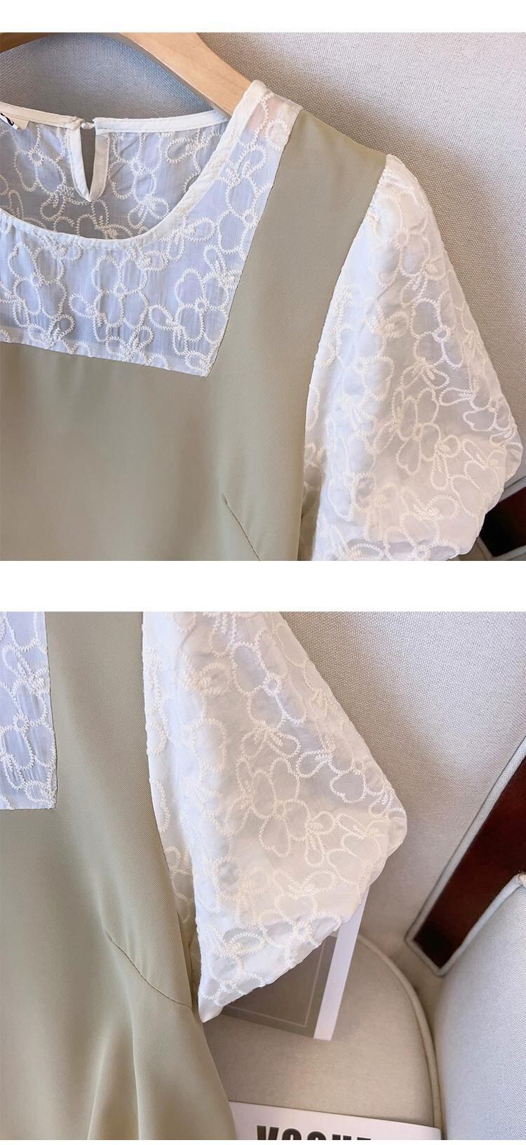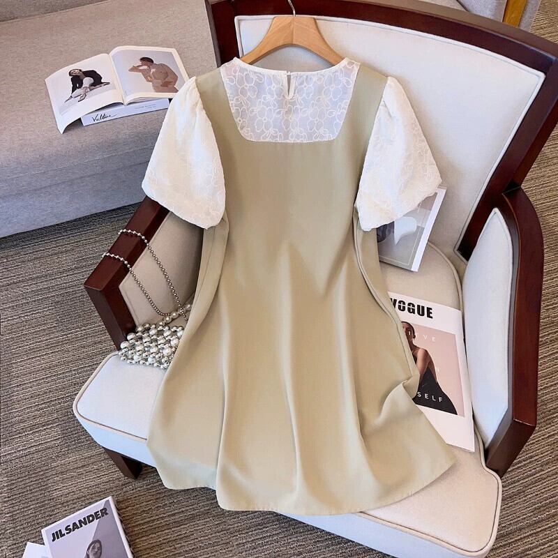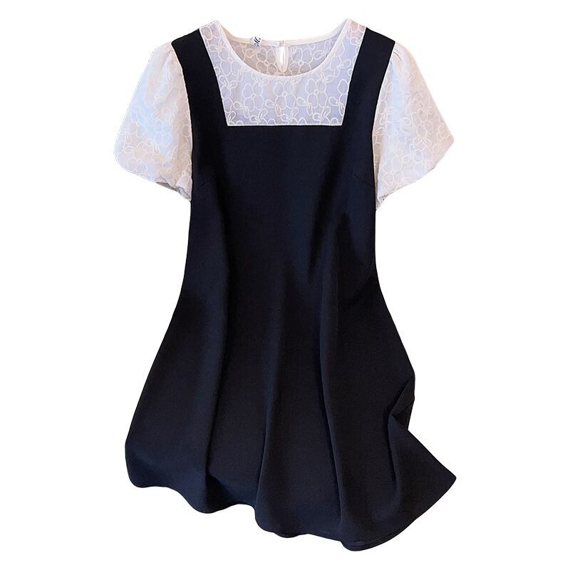プラスサイズの婦人服 2023 流行の夏の新しい脂肪姉妹デザインレーススプライシングスカート偽ツーピースサスペンダードレス 大きめサイズ サマー 夏物 8884161507651695
