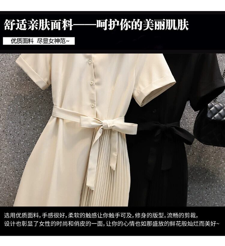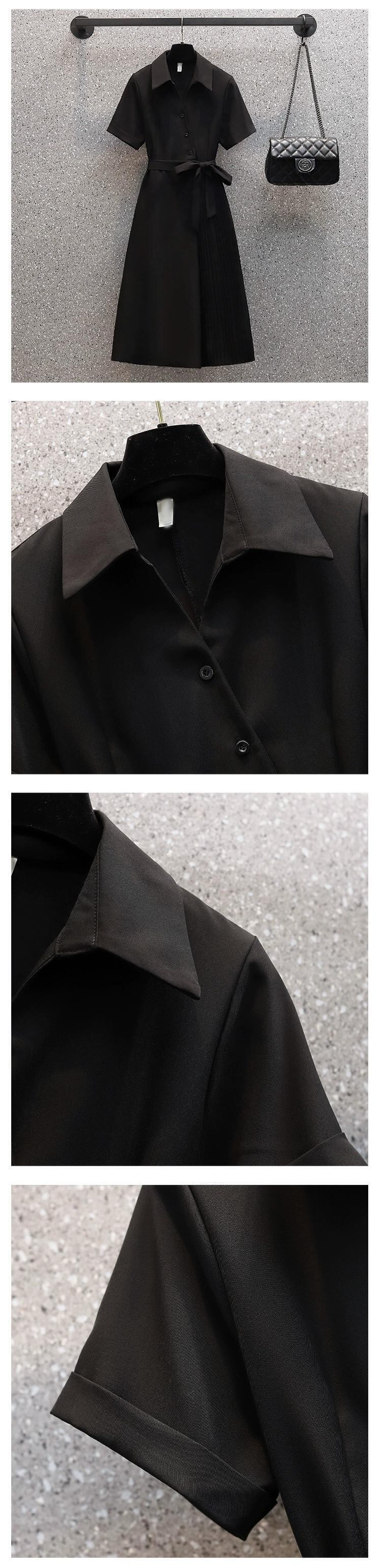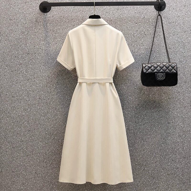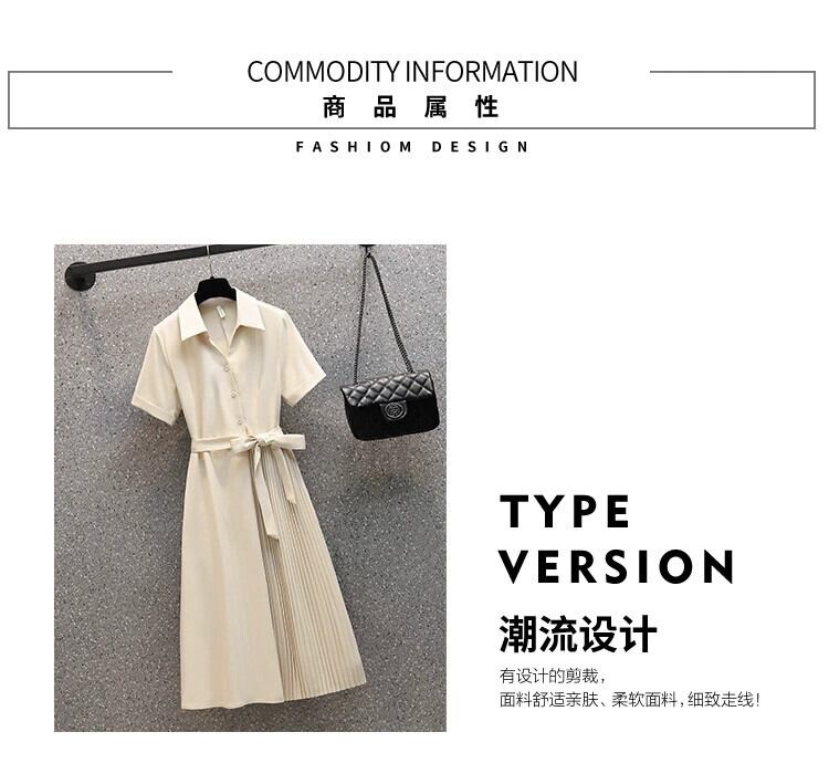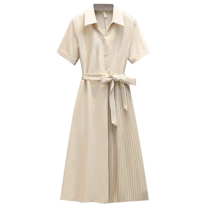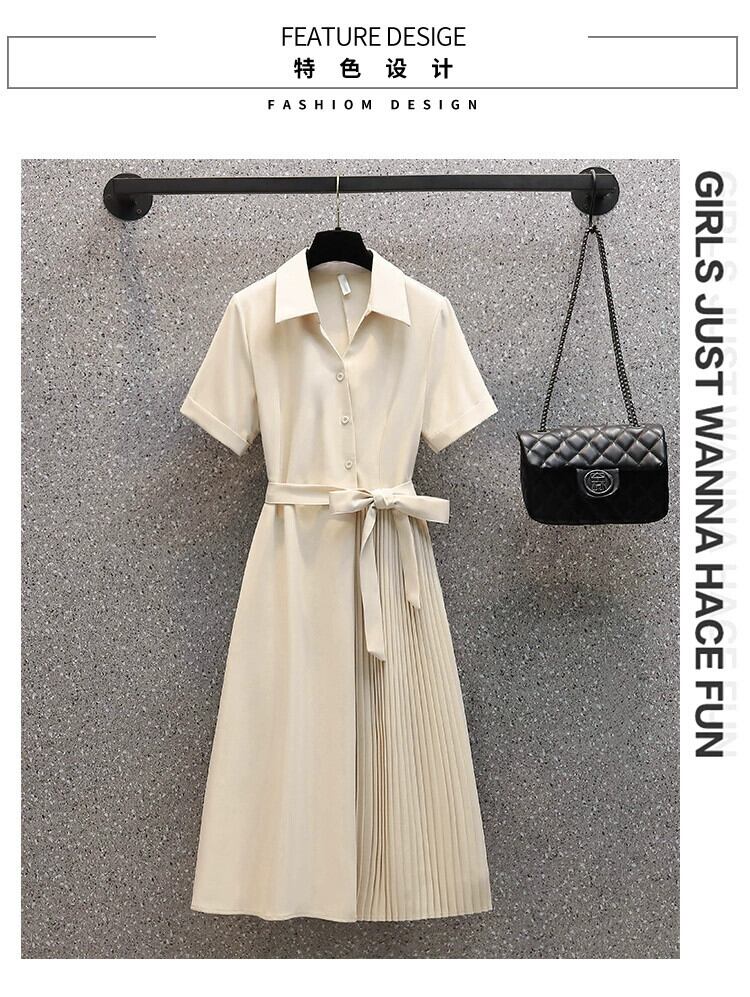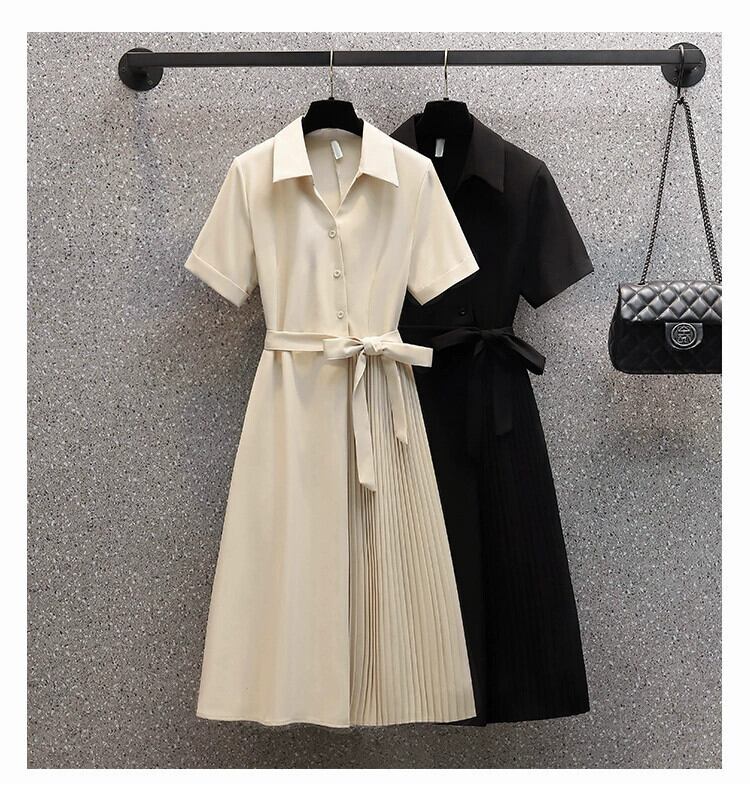 プラスサイズの女性の 2023 新しい夏のスカート脂肪カバー腹とスリムに見える弾性ウエストポロカラー無地ドレス エラスティック 伸縮 大きめサイズ サマー 夏物 ソリッドカラー 8884182500038701