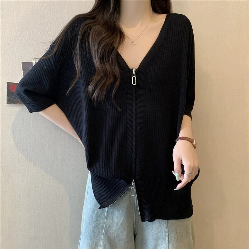プラスサイズの婦人服 2023 流行の夏の新しい脂肪姉妹スタイル腹カバー半袖 Tシャツセーター痩身ジッパートップ 大きめサイズ サマー 夏物 8884123357327179