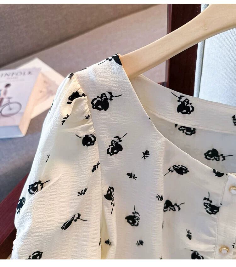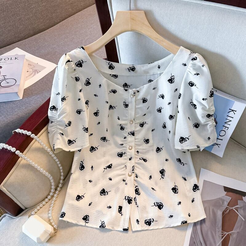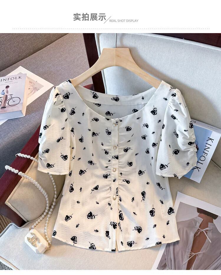 プラスサイズの女性の 2023 夏服脂肪年齢と気質を減らす花柄シフォン シャツ半袖お腹カバー デザイン トップ 大きめサイズ サマー 夏物 8884114436065835