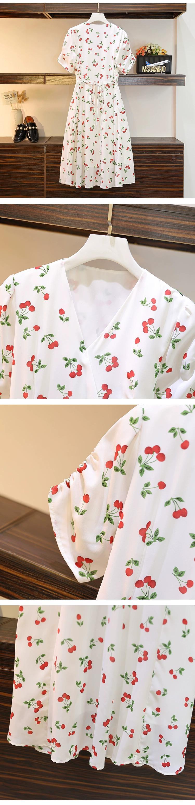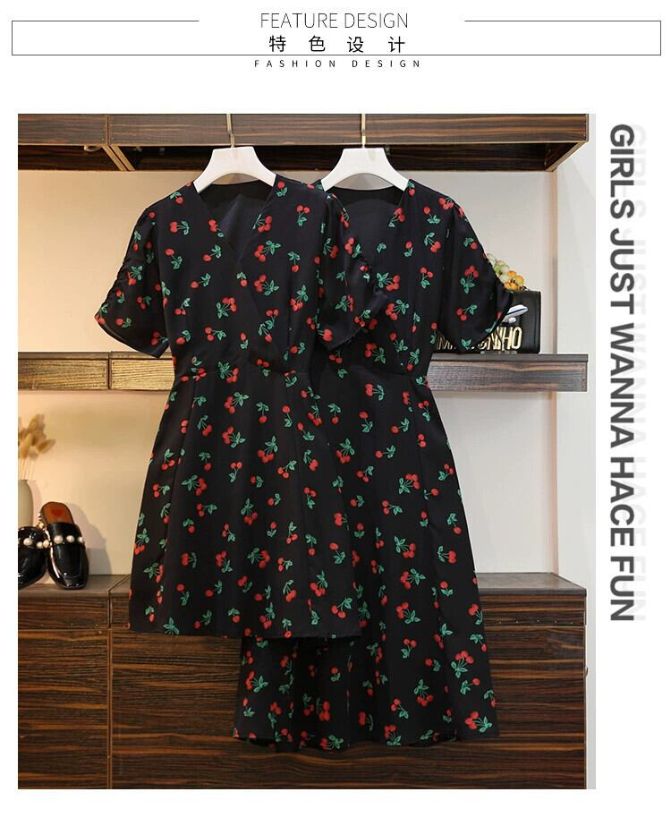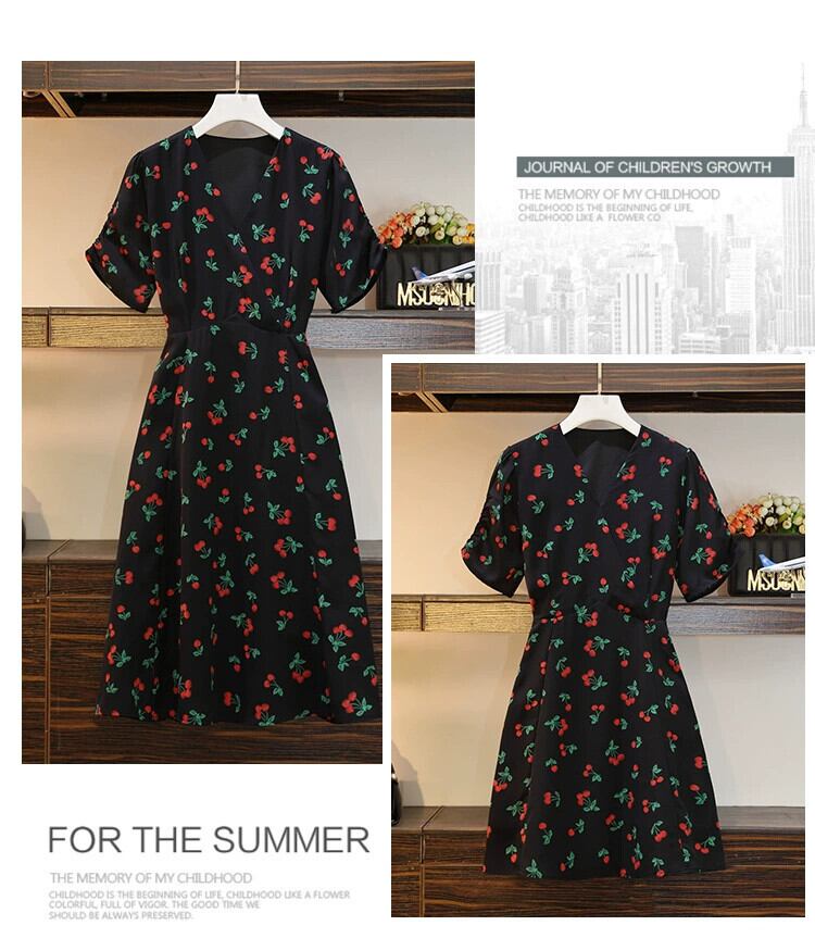 プラスサイズの婦人服 2023 流行の女性の夏の新しいスタイルファットシスターファッショナブルなフレンチフローラル痩身 V ネック気質ドレス女性 大きめサイズ サマー 夏物 花柄 Vネック 8884139463043594