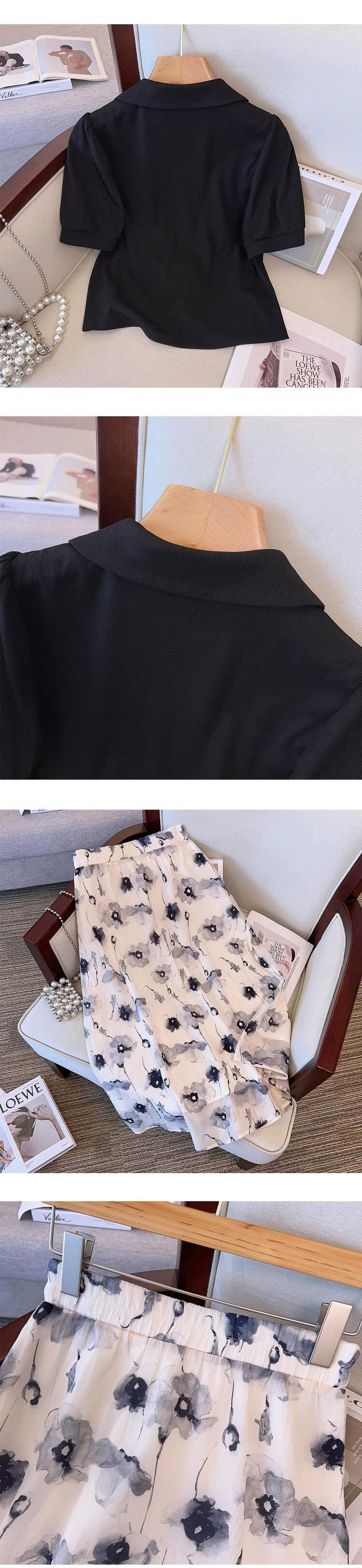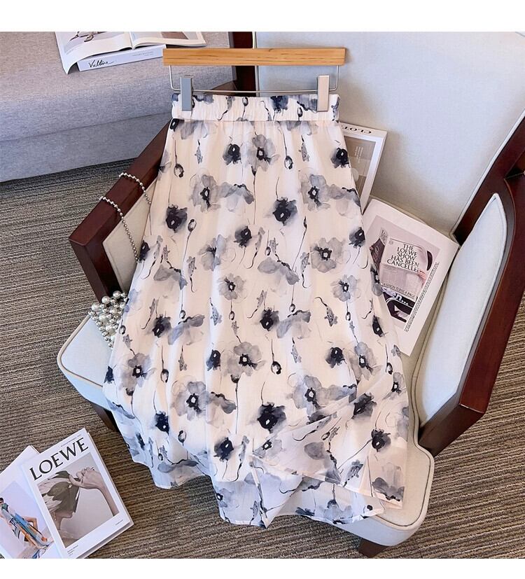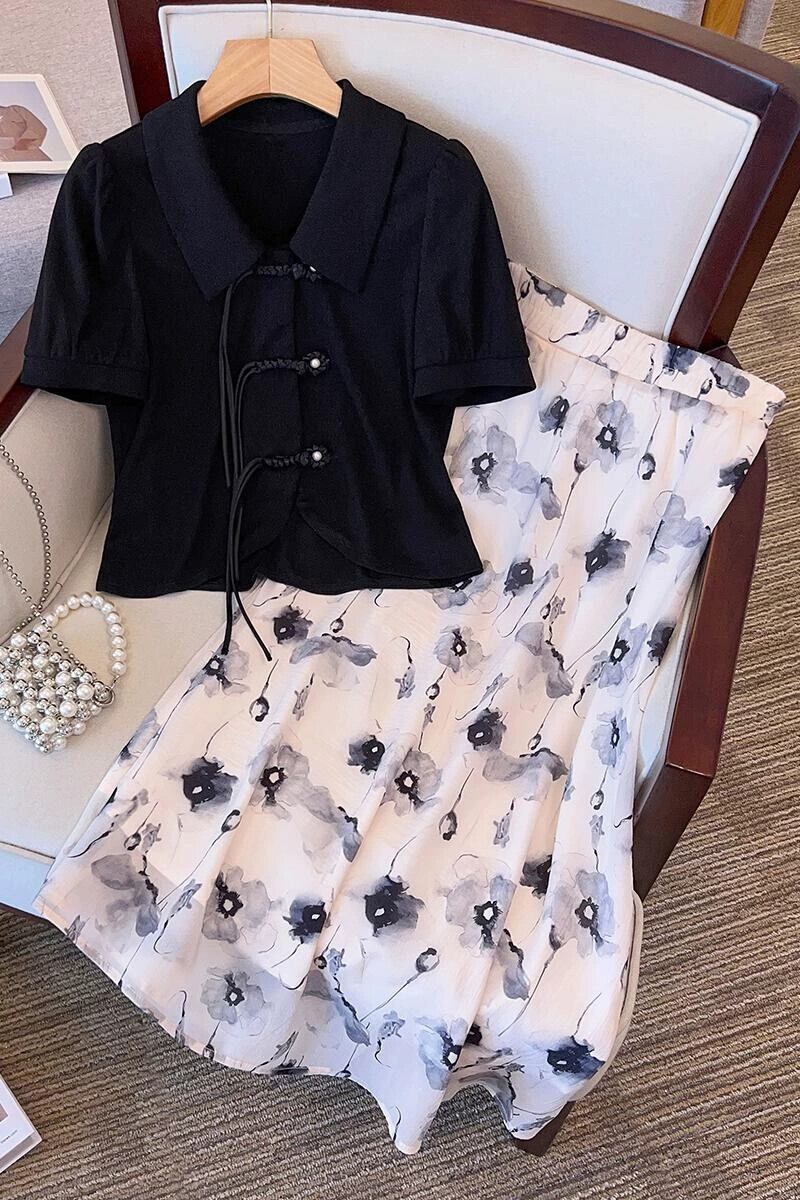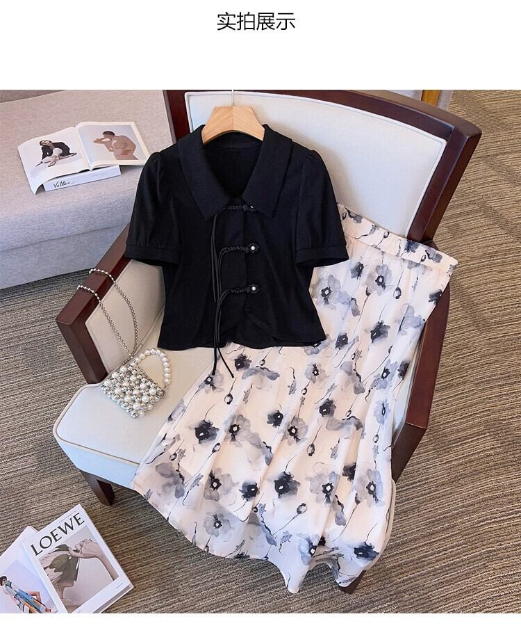 プラスサイズの婦人服 2023 トレンディな夏の新しいファッショナブルなスーツ脂肪の新しい中国風の半袖トップスとスカートの 2 点セット 大きめサイズ サマー 夏物 8884180567253774