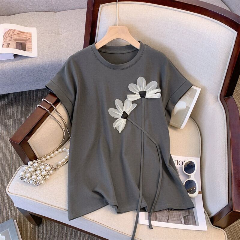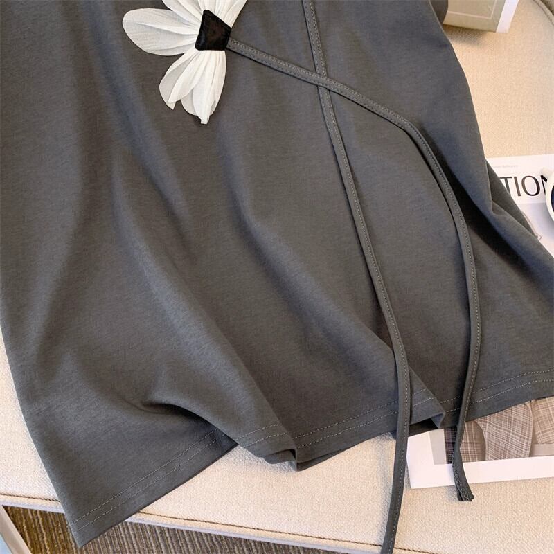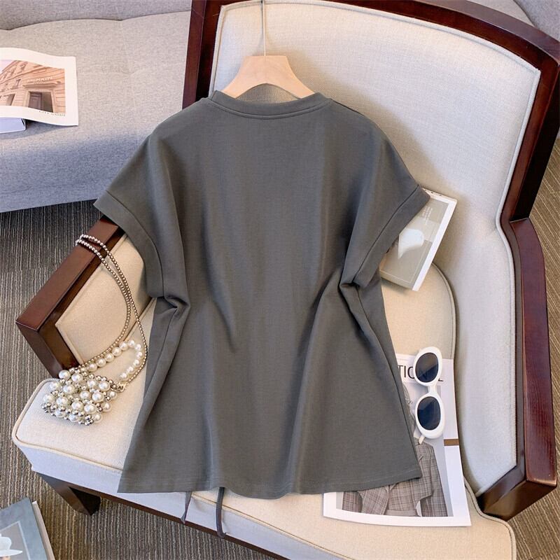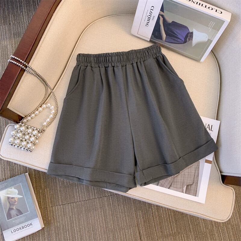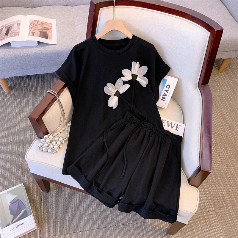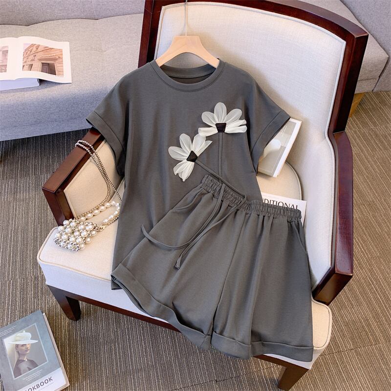 プラスサイズのレディース 2023 夏服、太くてファッショナブルで年齢を軽減するトップス、ハイウエストの多目的カジュアルショーツ 2 点セット 大きめサイズ サマー 夏物 ブルマー 8884187938209357