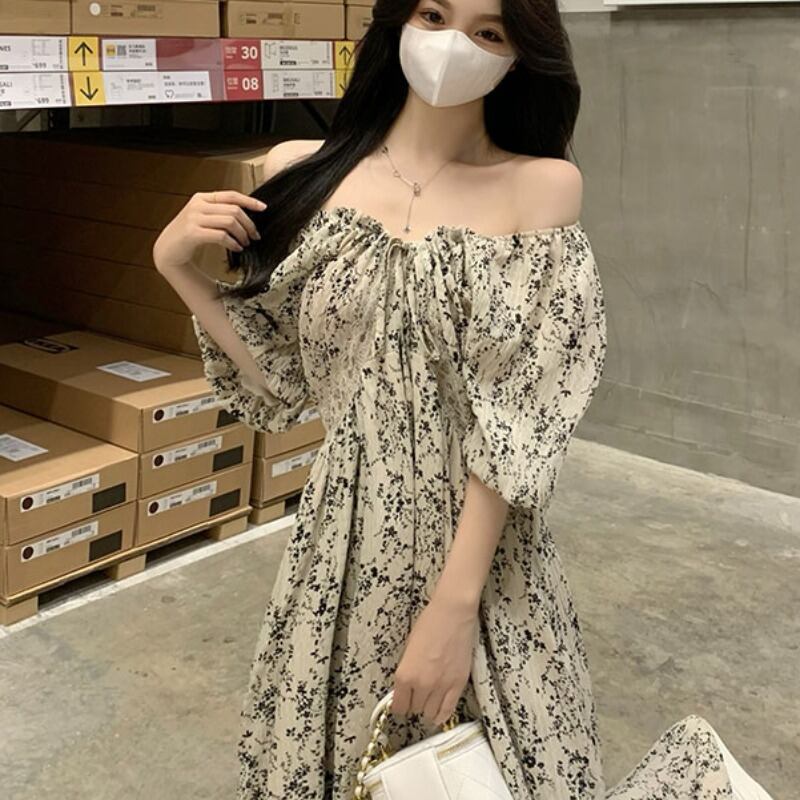 プラスサイズの婦人服 2023 脂肪姉妹夏の新しいスタイルの気質ワンショルダー花柄スカート高度な肉カバー痩身ドレス 大きめサイズ サマー 夏物 8884151720427686