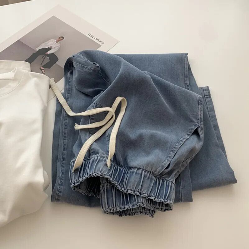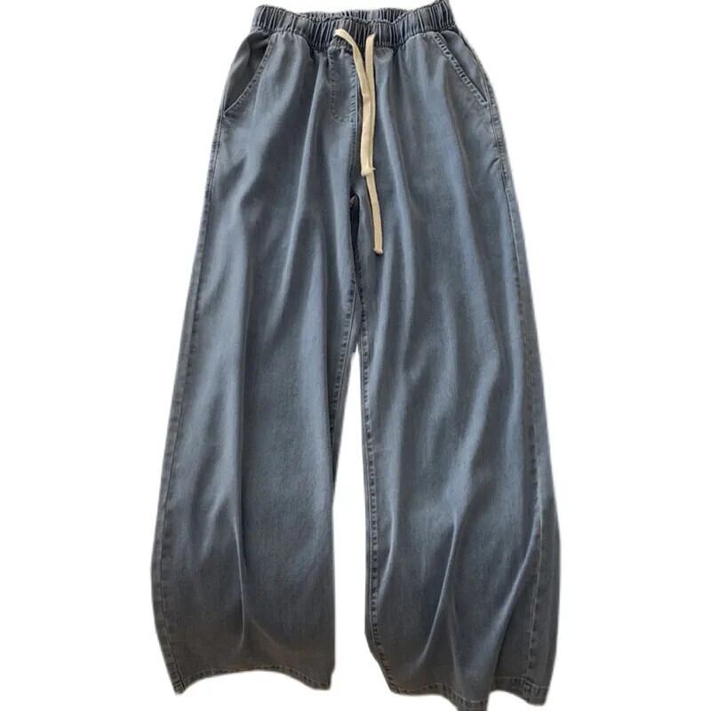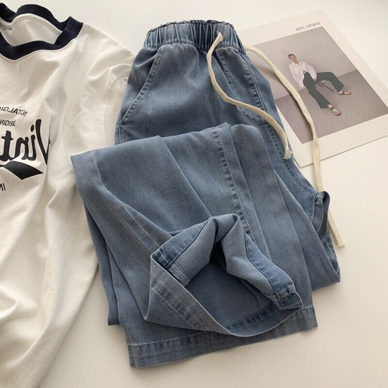 プラスサイズの女性の 2023 夏服ファットシスター多用途薄型テンセルジーンズ痩身ワイドレッグパンツ 大きめサイズ サマー 夏物 ワイドパンツ 8884155776963837