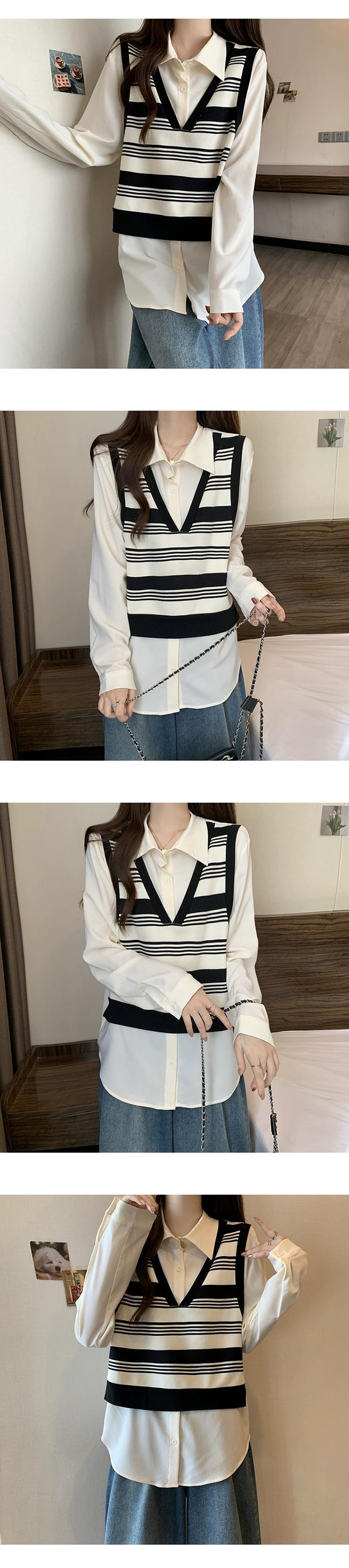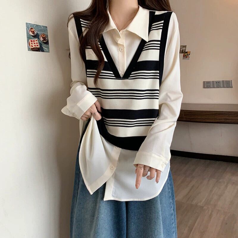 プラスサイズの婦人服 2023 トレンディな秋の新ファットシスター女性偽ツーピース肉カバー痩身シャツ多用途ボトリングシャツトップ 大きめサイズ オータム 秋物 8884128045901753