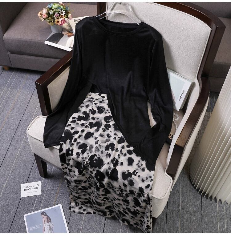 プラスサイズの婦人服 2023 流行の夏の新しい脂肪姉妹ファッションカジュアルスーツ長袖 Tシャツスカートツーピーススーツ ロング 大きめサイズ サマー 夏物 8884148569903173