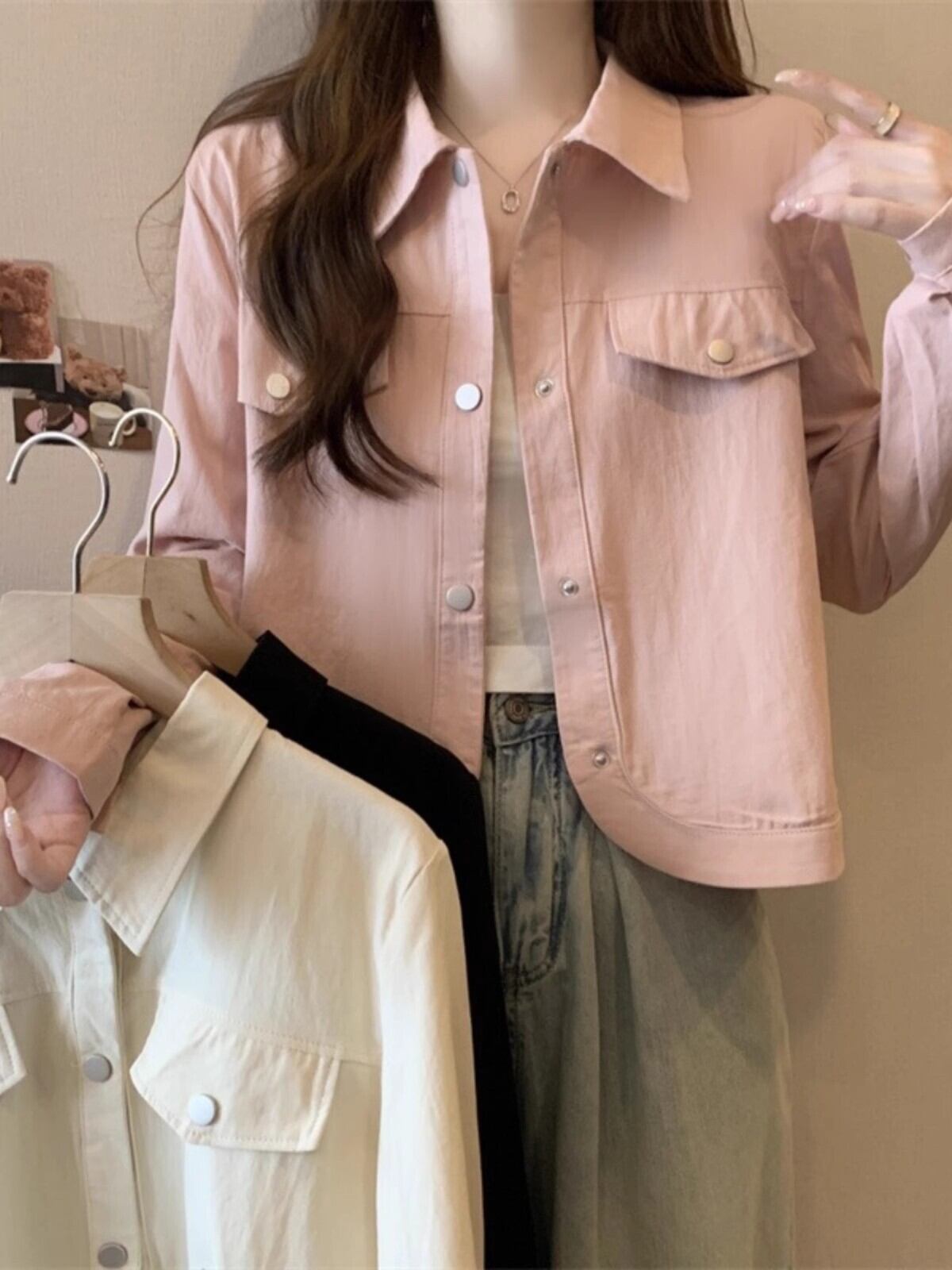 大きいサイズ ポロ襟 長袖 デニム ジャケット 2023 秋新作 レディース ファット mm アウター カーディガン ショート トップ ロング 大きめサイズ オータム 秋物 8884123360213692