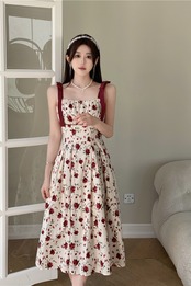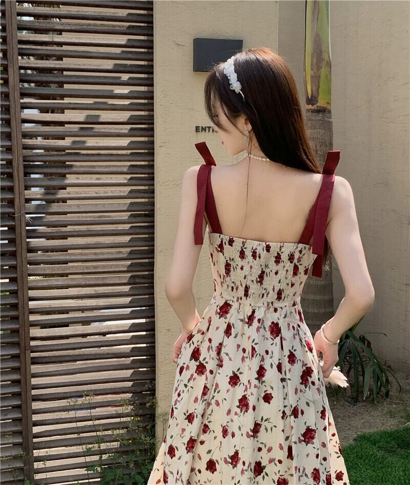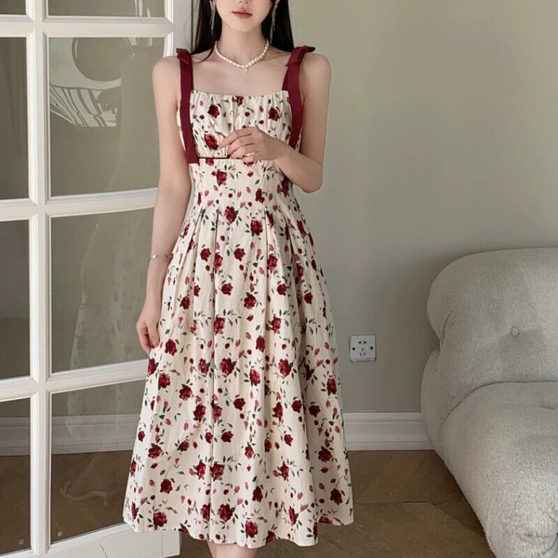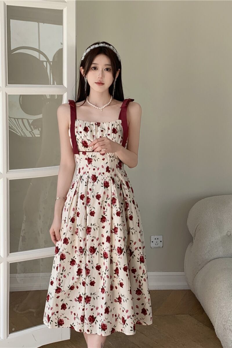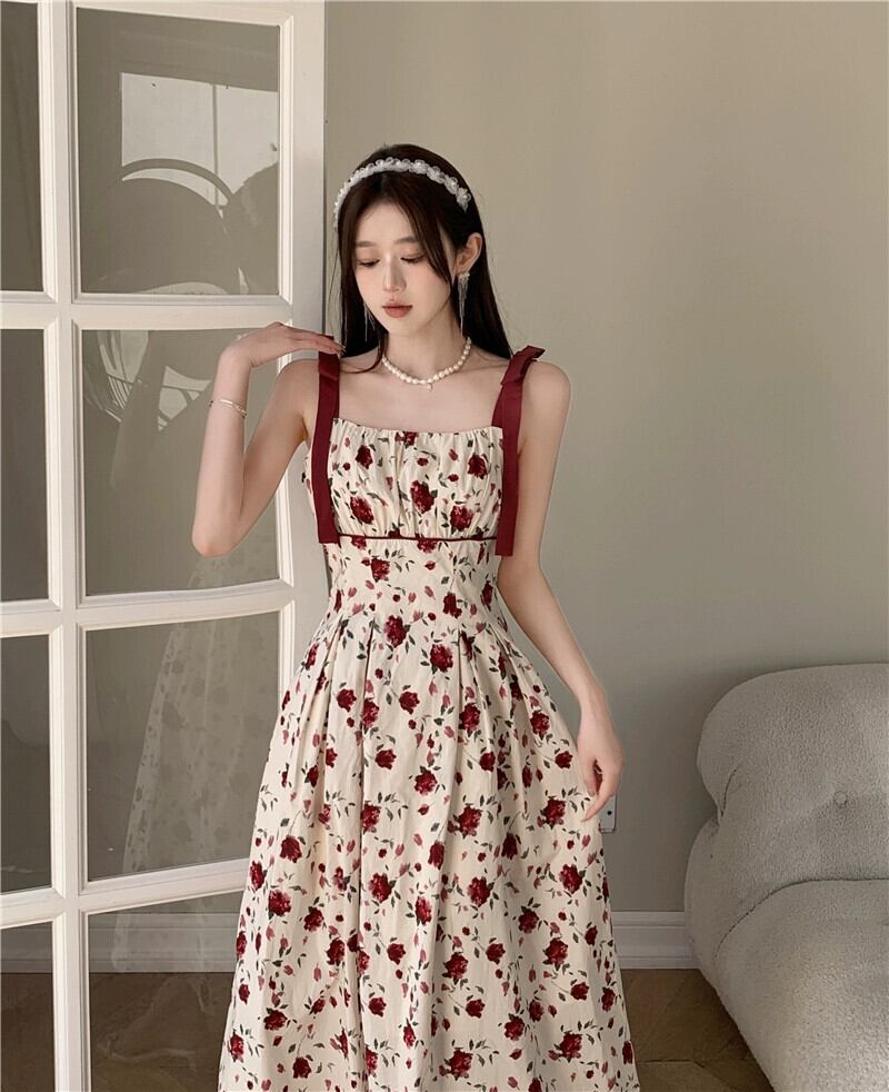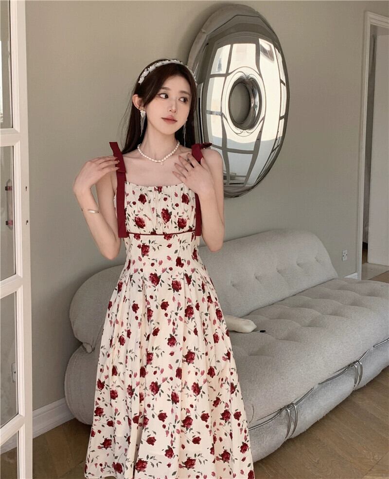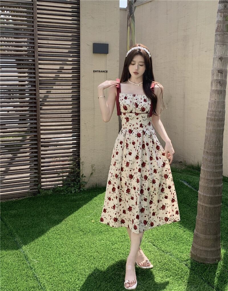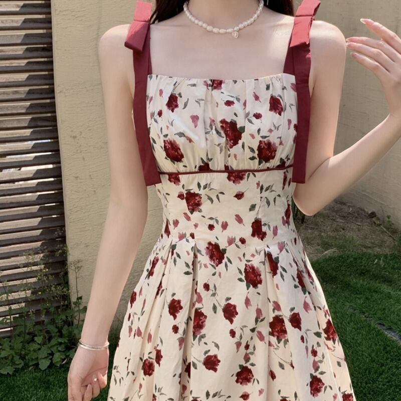 プラスサイズの婦人服 2023 トレンディな夏の新しいファットシスターレトロフレンチフローラルドレスレースアップサスペンダースリムロングスカート 大きめサイズ サマー 夏物 花柄 8884170253754566