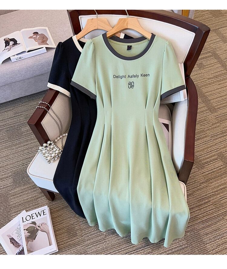 プラスサイズの婦人服 2023 流行の夏の新しいファットシスターカジュアルレタープリントプリーツスカート多用途スリムドレス 大きめサイズ サマー 夏物 8884170729435523
