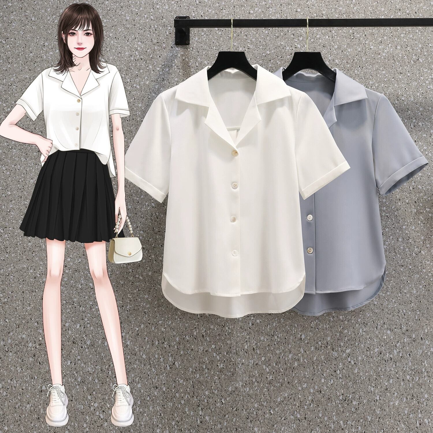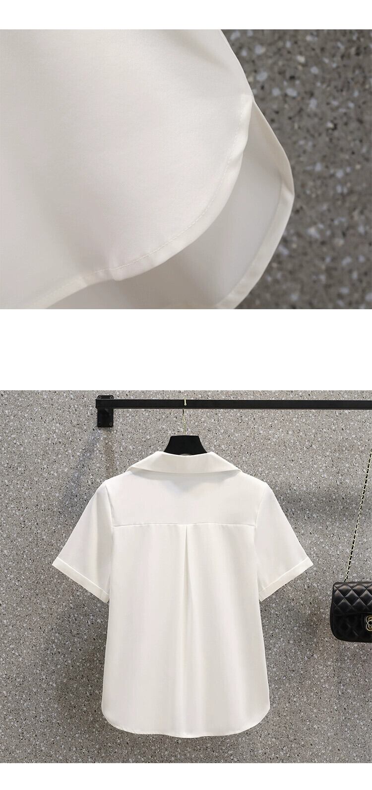 プラスサイズの女性の 2023 ファットシスター夏服スタイルシンプルな気質スーツの襟半袖シャツスリムトップ ショート ハーフスリーブ 大きめサイズ サマー 夏物 8884196414363354