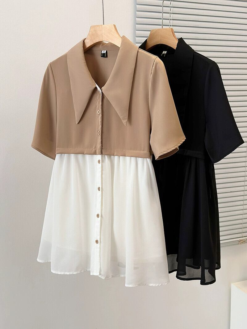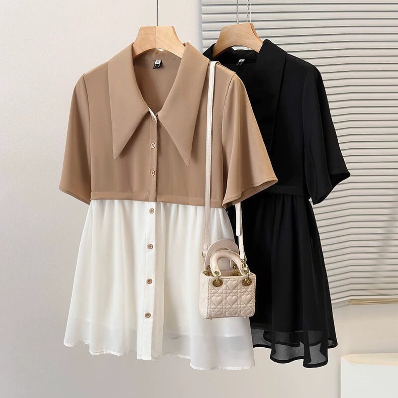 プラスサイズの女性の 2023 トレンディな夏スタイルファットシスターウエスタンスタイルシャツスタイルスプライシングフェイクツーピーストップ 大きめサイズ サマー 夏物 8884185335891088
