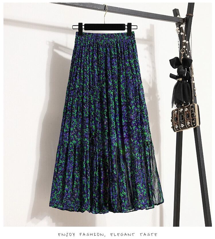 プラスサイズの婦人服 2023 流行の夏の新しい脂肪姉妹ファッションシフォンプリントスリットスカート年齢削減痩身スカート 大きめサイズ サマー 夏物 8884191907378947