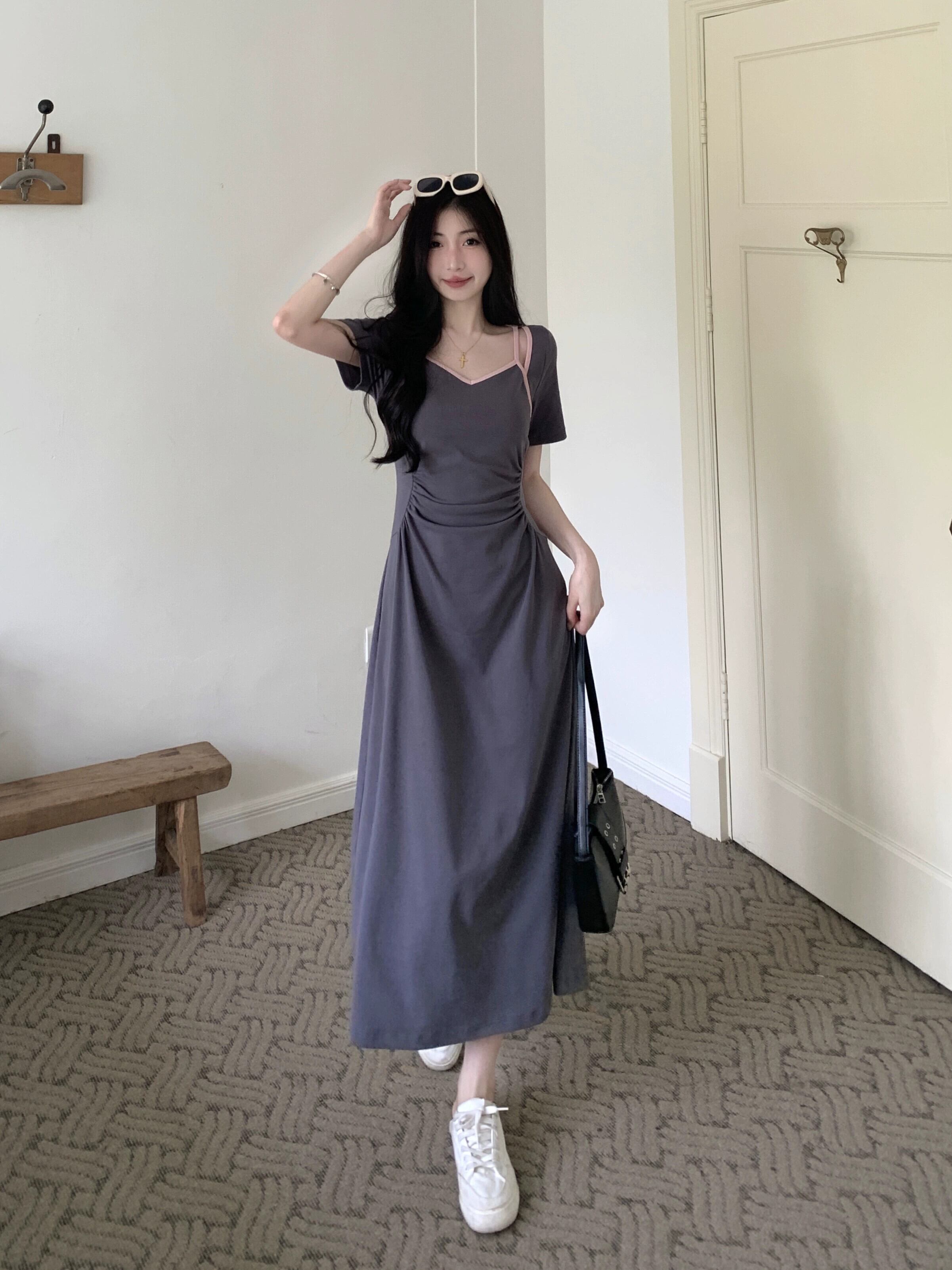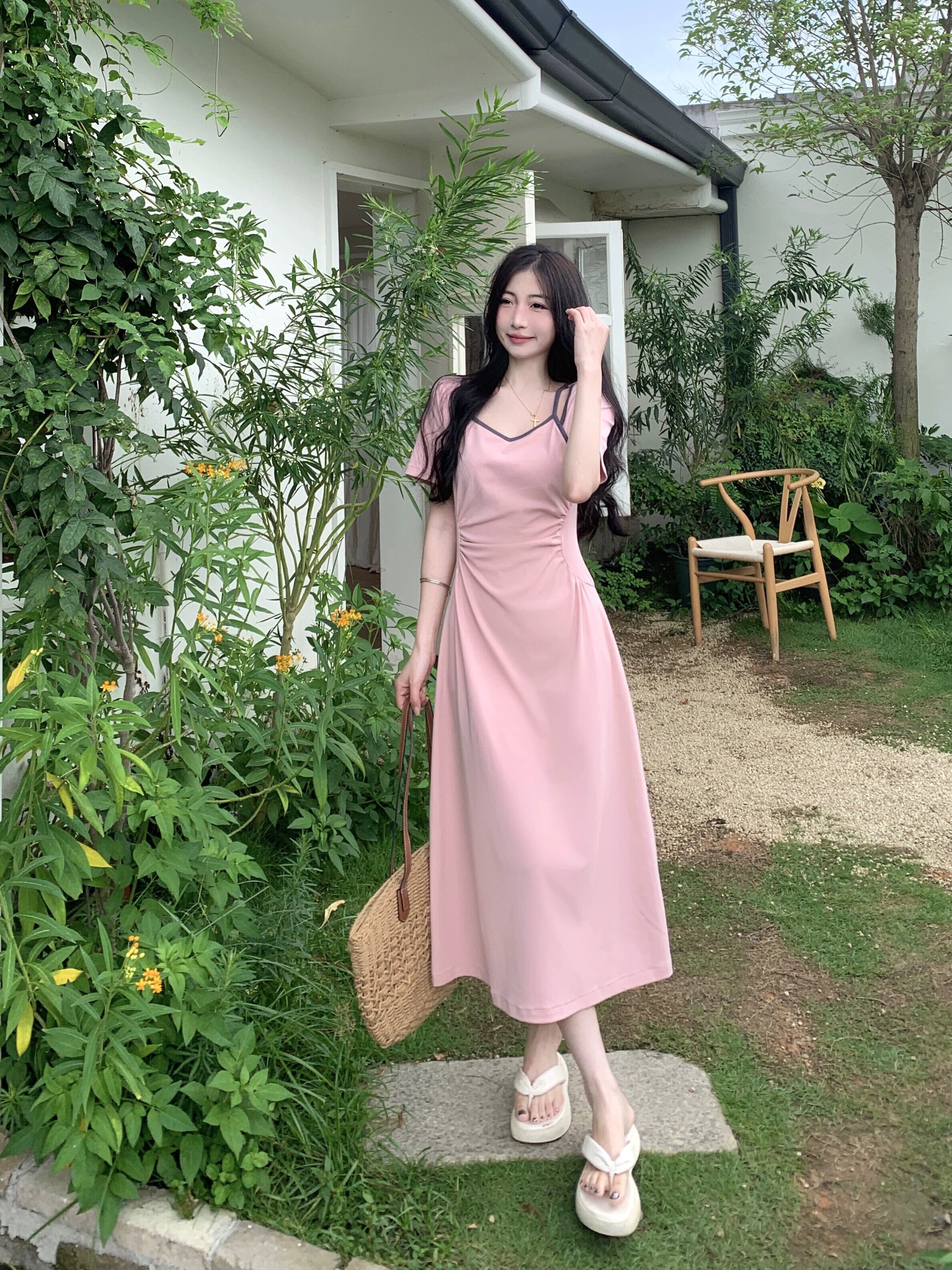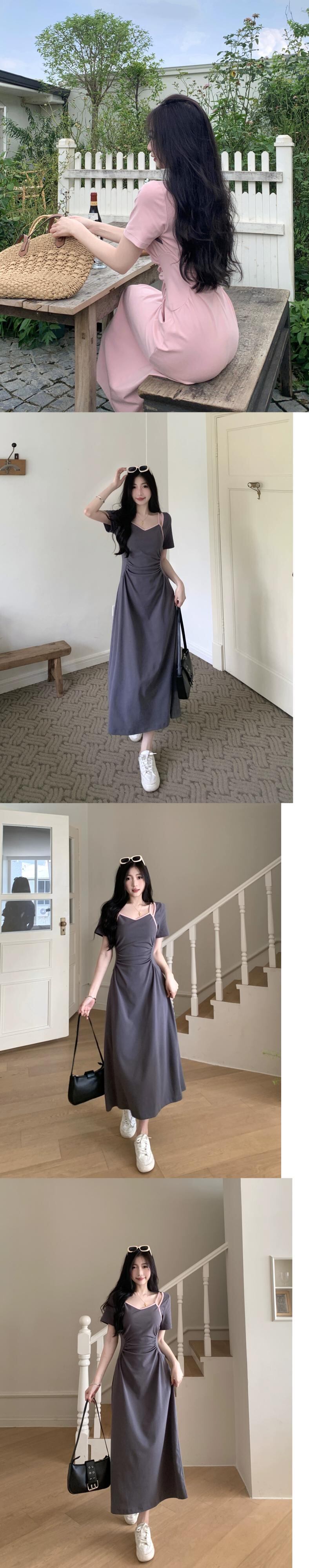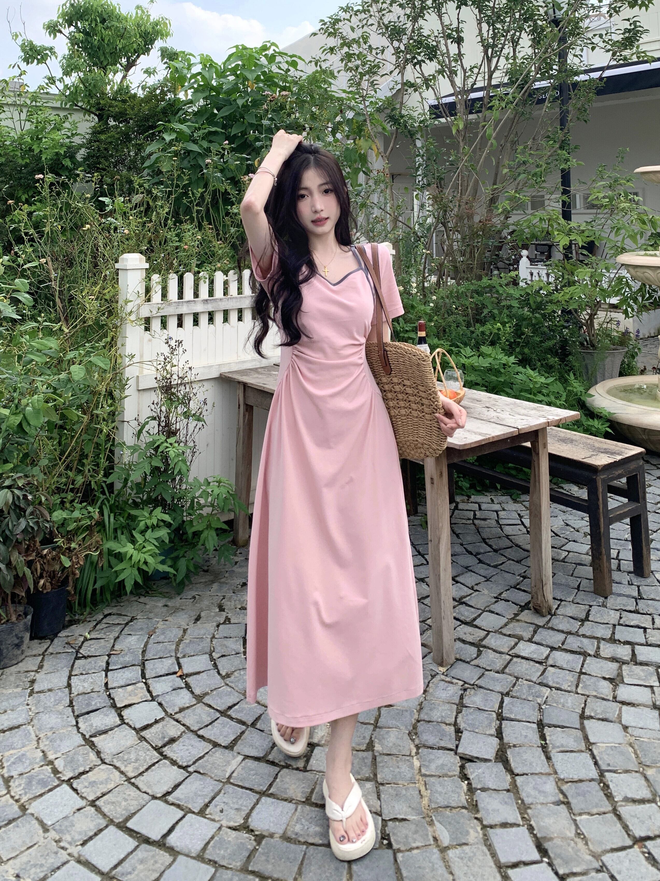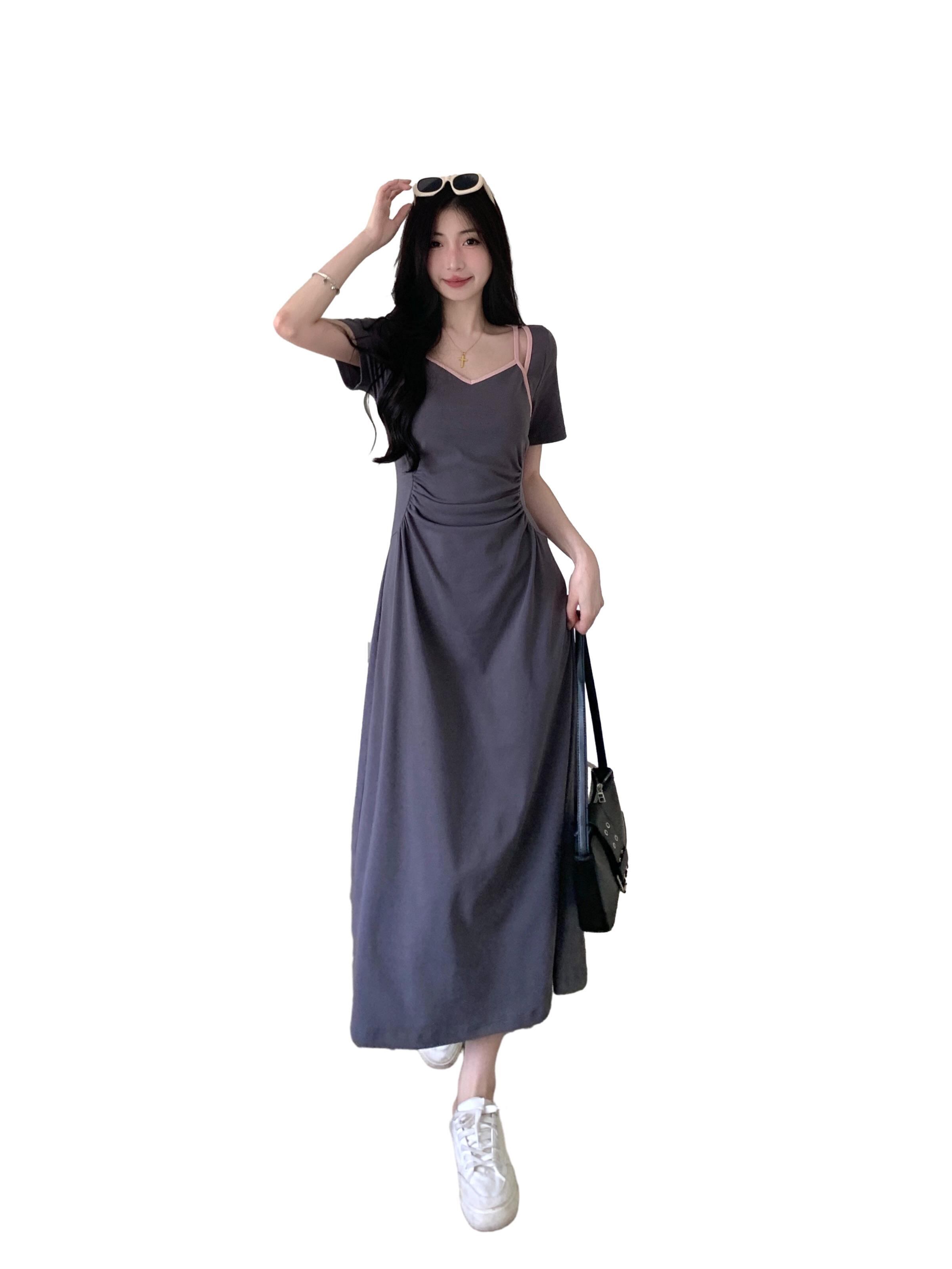 プラスサイズの婦人服 2023 脂肪姉妹夏服新しい甘いスタイルのロングスカート痩身プリーツデザインフレンチドレス 大きめサイズ 大人ガーリー スウィート キュート カジュアル サマー 夏物 8884198416974461