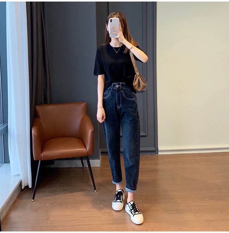 プラスサイズの婦人服 2023 ファットシスター秋服新ファッション多用途老化ハーレムジーンズ痩身ストレートパンツ 大きめサイズ オータム 秋物 8884162299770289