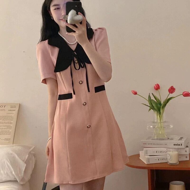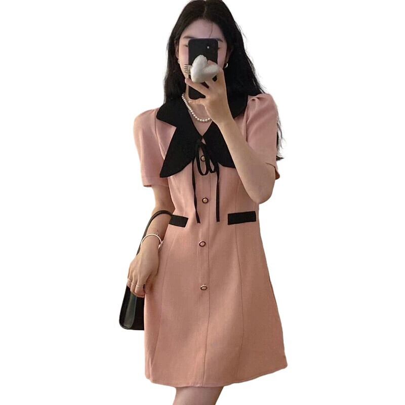 プラスサイズの婦人服 2023 流行の夏の新しい脂肪姉妹弓スリムスカートハイエンドのファッションカーディガンドレス リボン 大きめサイズ サマー 夏物 8884189089465187