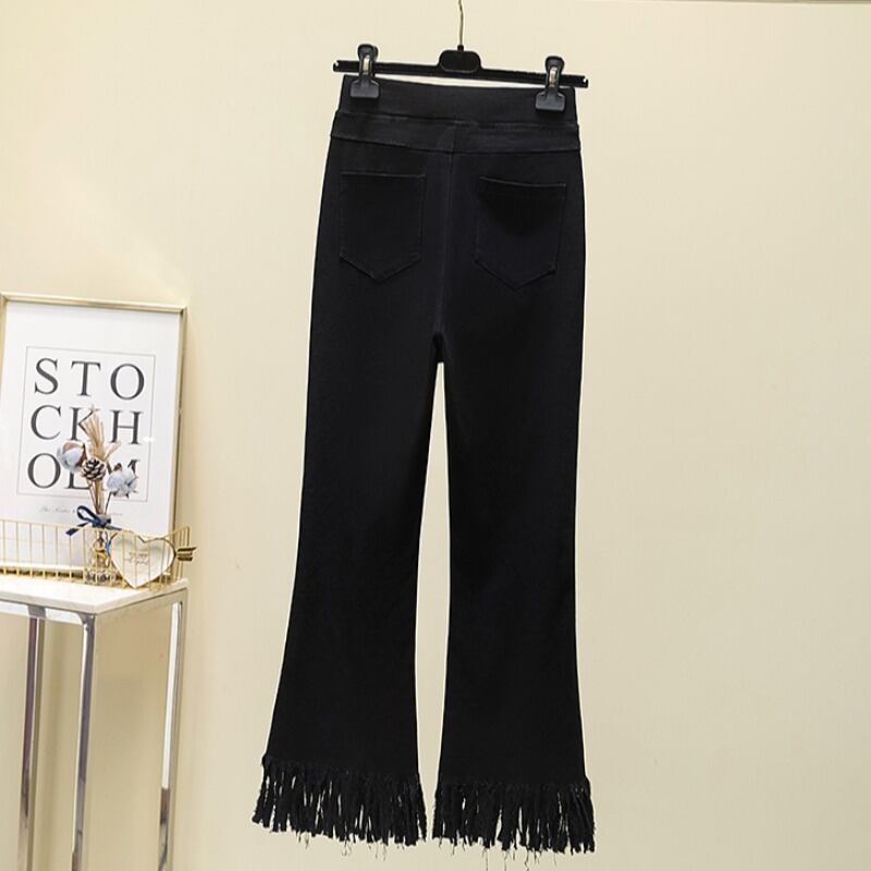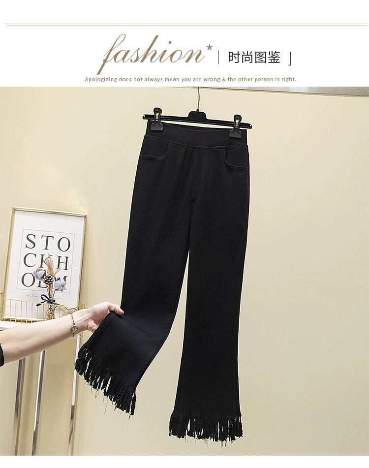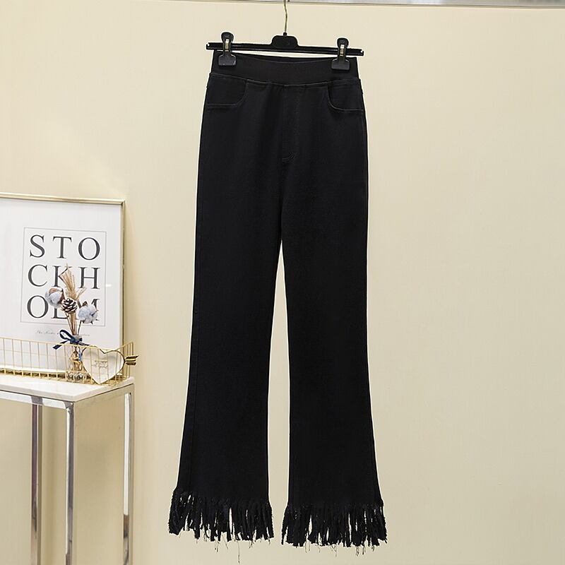 プラスサイズの女性の 2023 夏服脂肪弾性ハイウエスト痩身電話マイクロフレアパンツ年齢を減らす気質カジュアルパンツ ハイウェスト エラスティック 伸縮 大きめサイズ サマー 夏物 8884111798278332