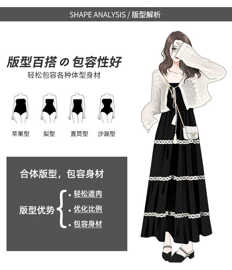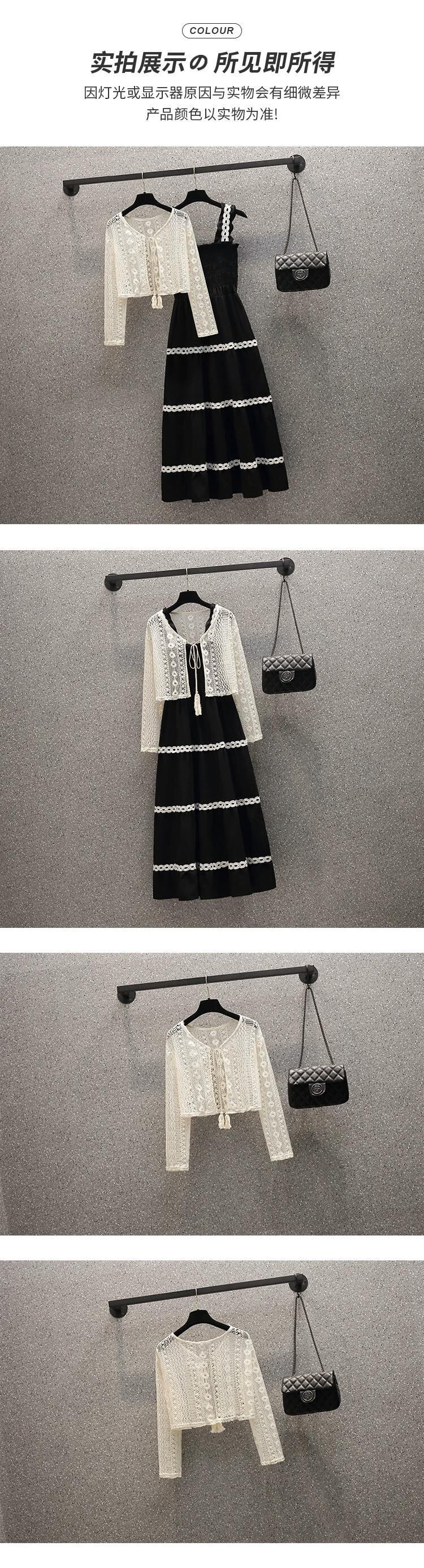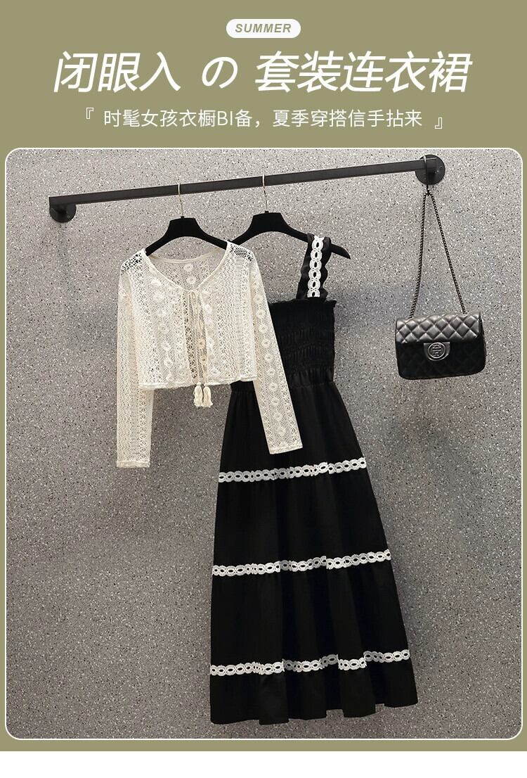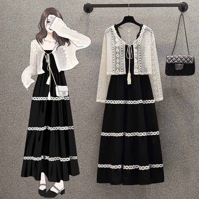 プラスサイズの女性の 2023 夏服脂肪年齢を減らすデザイン長袖トップスフレンチ サスペンダー ドレス 2 点セット ロング 大きめサイズ サマー 夏物 8884197748643971