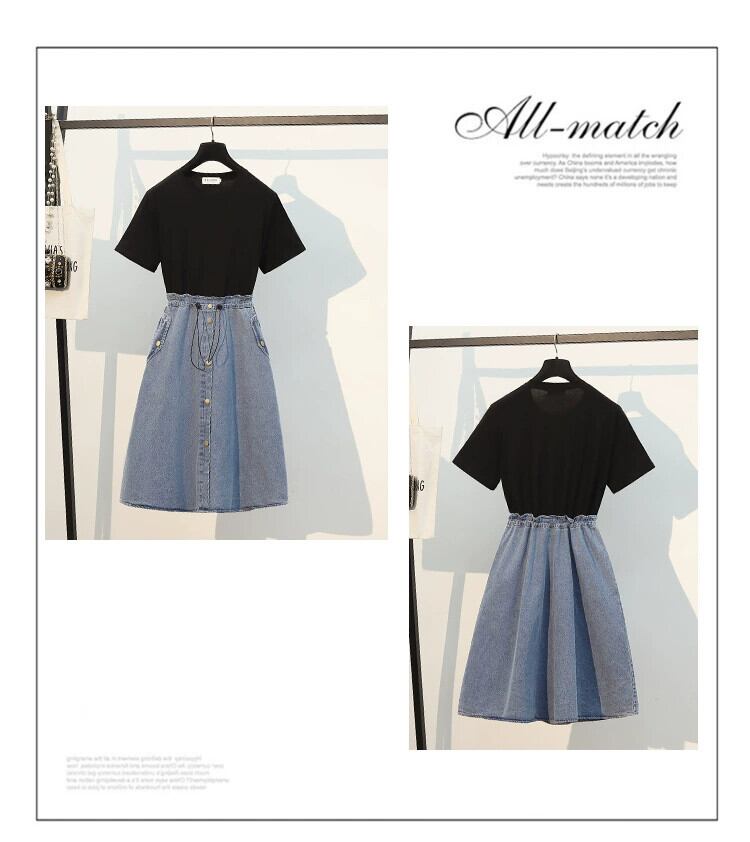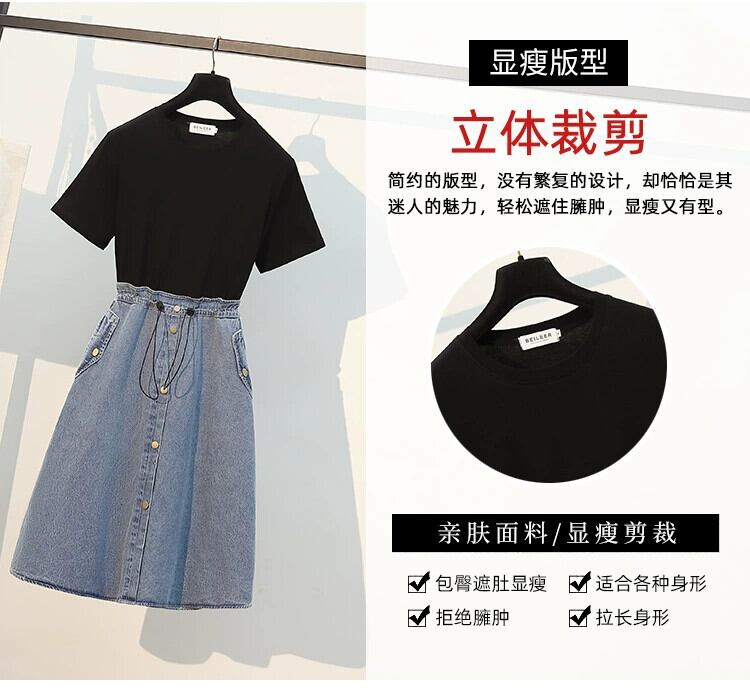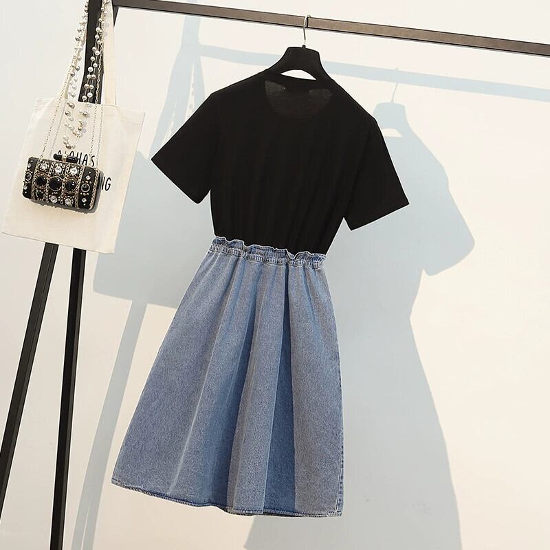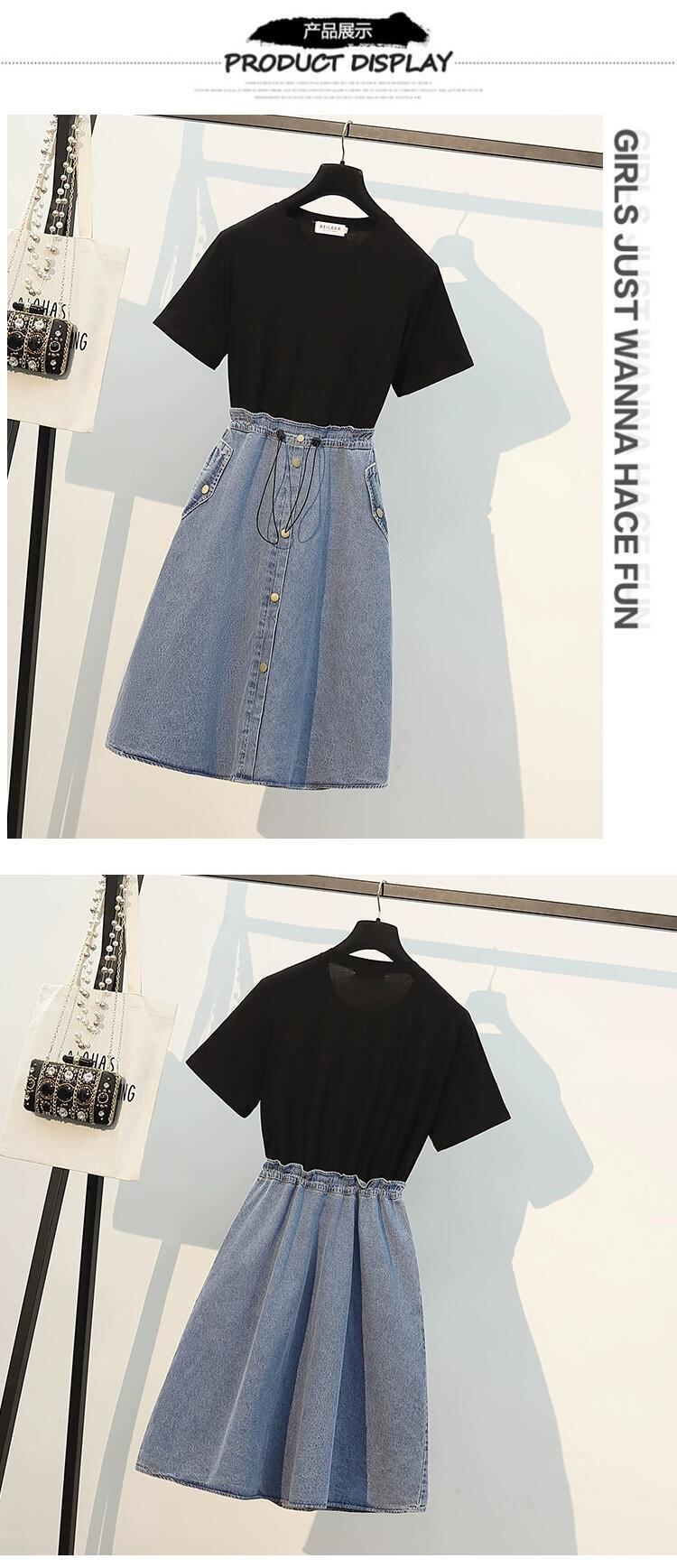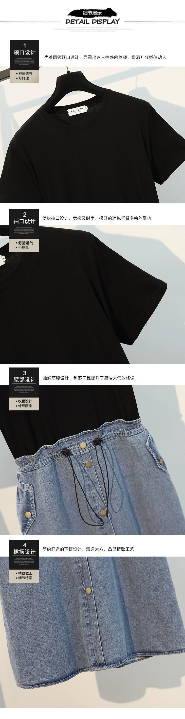 プラスサイズの婦人服 2023 脂肪姉妹夏の新ファッション a ラインスカートスリム気質スプライシング半袖デニムドレス 大きめサイズ サマー 夏物 Aライン 8884183075179421