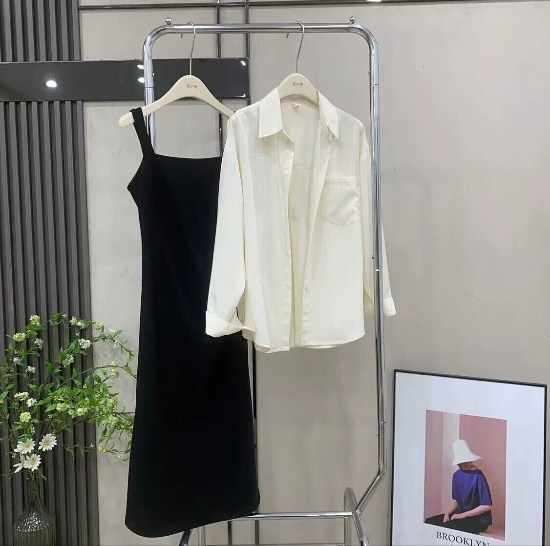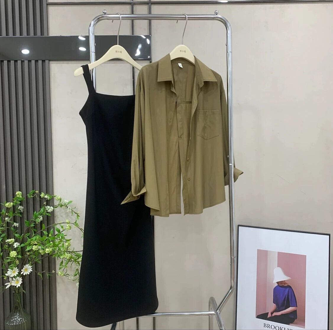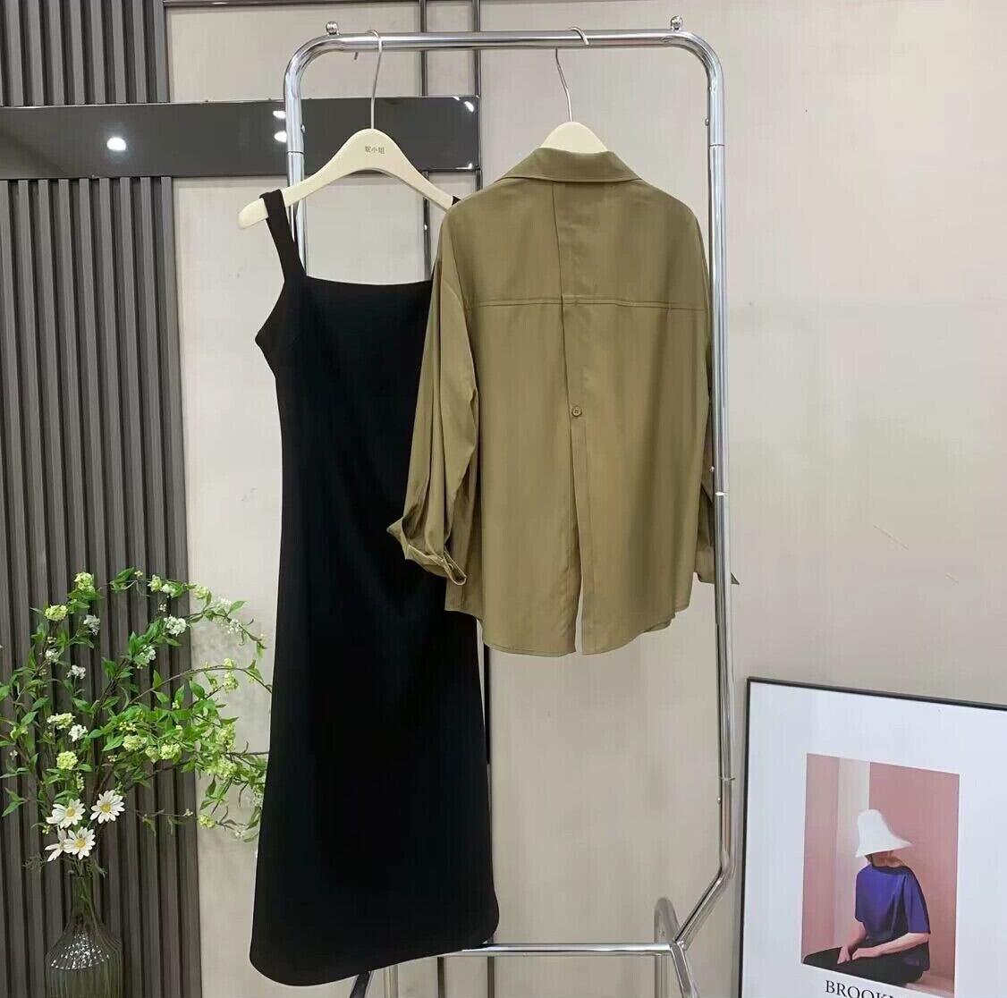 色:白のシャツ,カーキ色のシャツ,ピンクのスカート,黒スカート