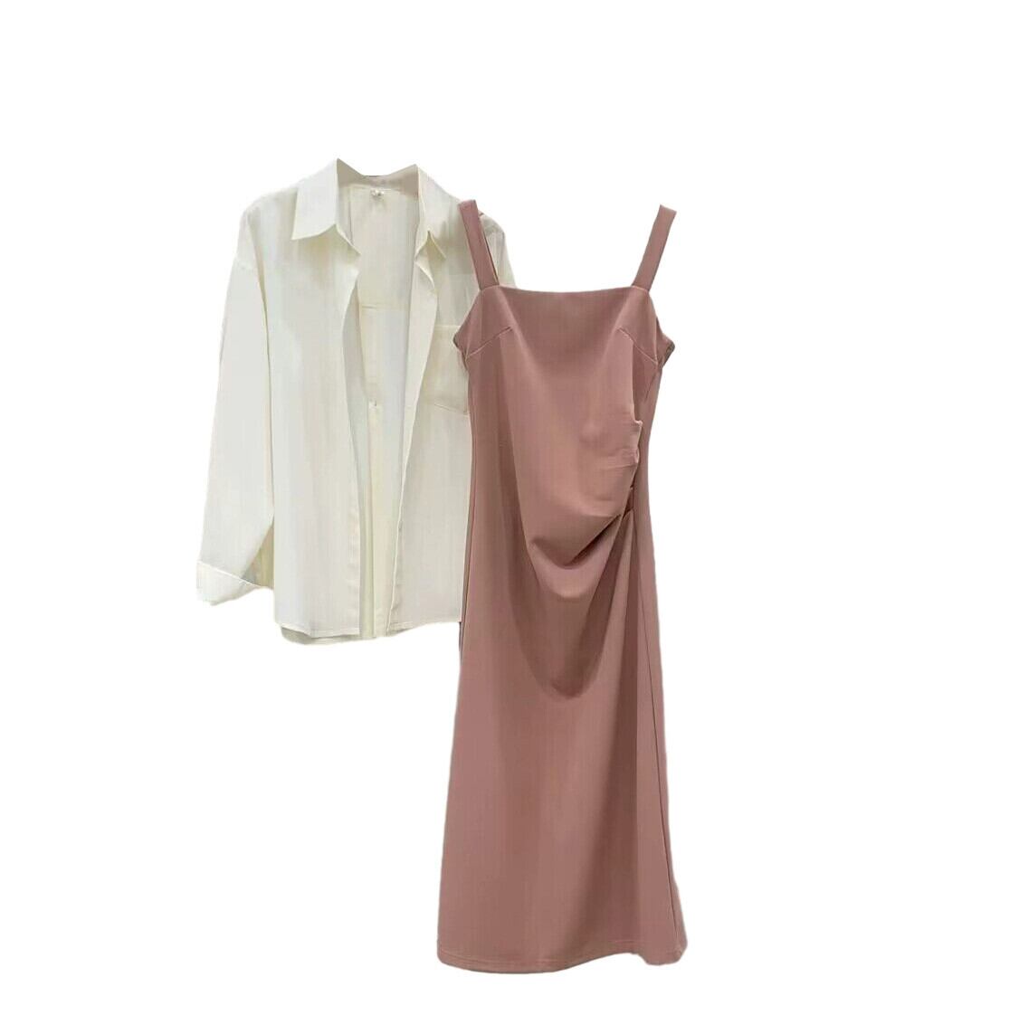 プラスサイズの婦人服 2023 脂肪姉妹夏の新しいファッションスーツバックロングサスペンダースカートシャツ 2 点セット 大きめサイズ サマー 夏物 8884142510809338