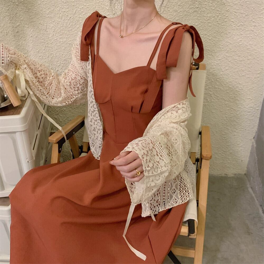 プラスサイズの婦人服 2023 脂肪姉妹夏新フレンチスタイルレトロサスペンダースカートウエスト痩身滑り止めツーピーススーツ 大きめサイズ サマー 夏物 8884158508557821