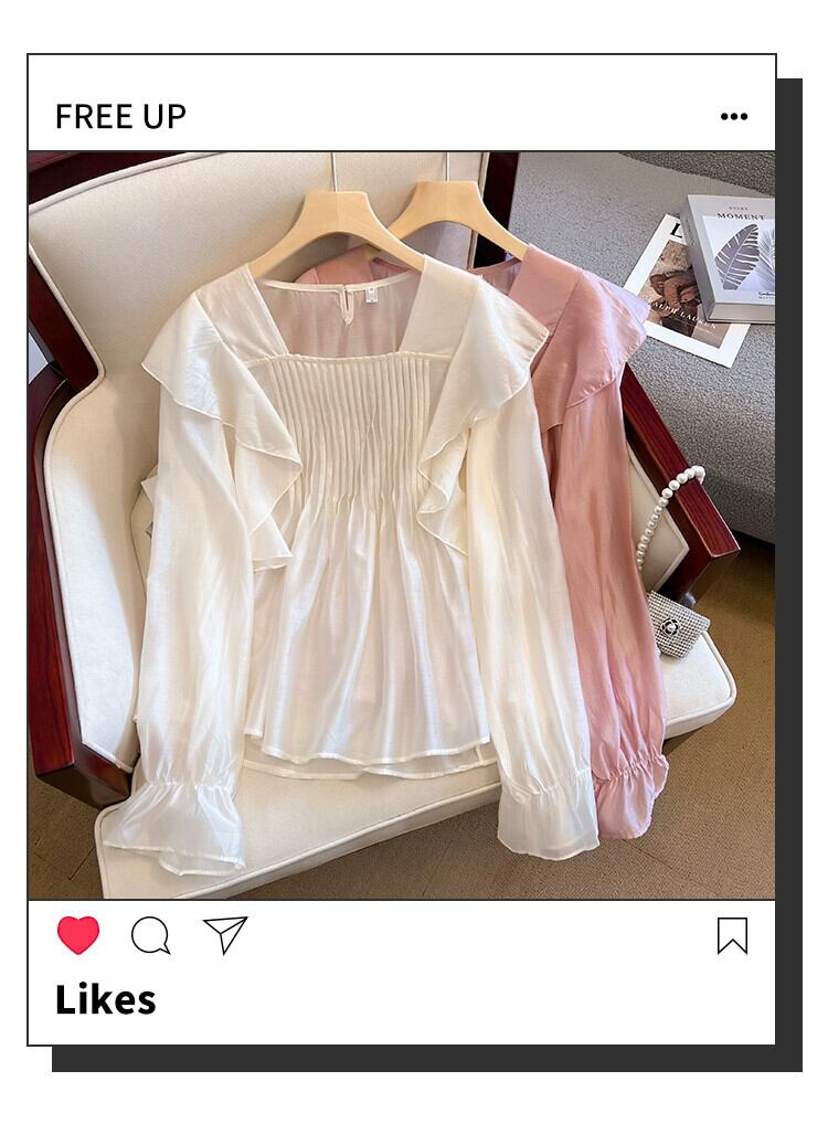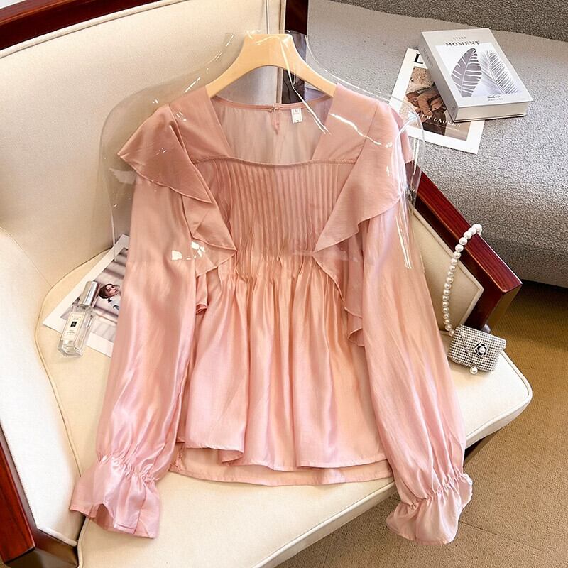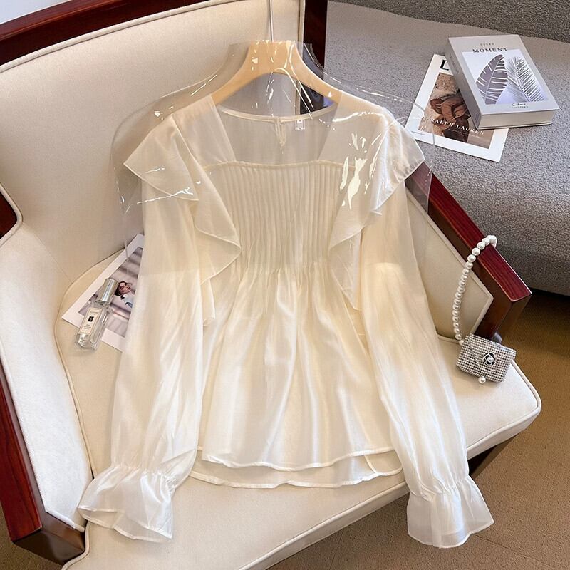 プラスサイズの婦人服 2023 ファットシスター秋服新フランス痩身年齢軽減長袖日焼け防止シャツレースの小さなシャツ ロング 大きめサイズ オータム 秋物 8884111532236680