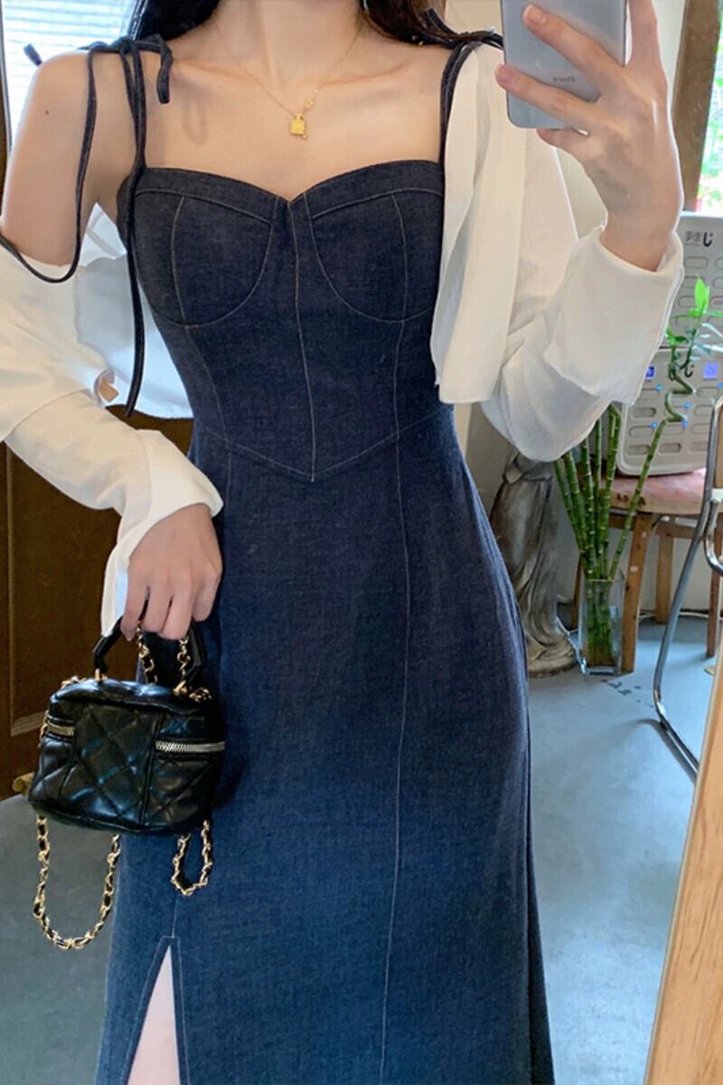 プラスサイズの女性の 2023 夏服脂肪新しいフレンチサスペンダードレスライト成熟したスタイルジャケットツーピーススーツ 大きめサイズ サマー 夏物 8884196766121807