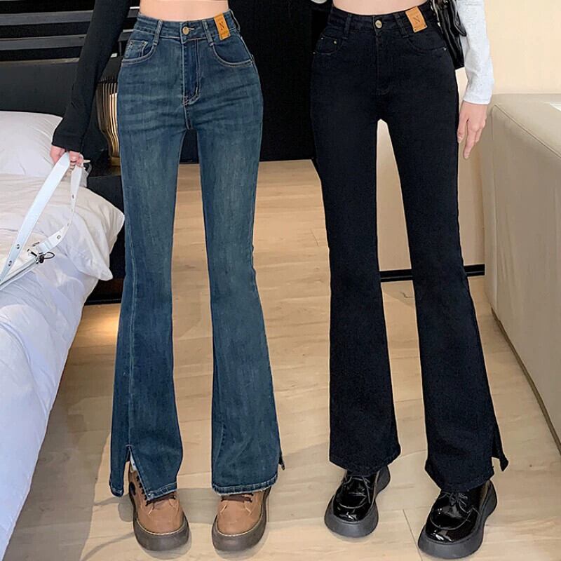 プラスサイズの婦人服 2023 トレンディな秋の新しいファットハイウエストデニムマイクロフレアストレッチオールマッチスリムパンツ レッド 大きめサイズ オータム 秋物 888412142360312