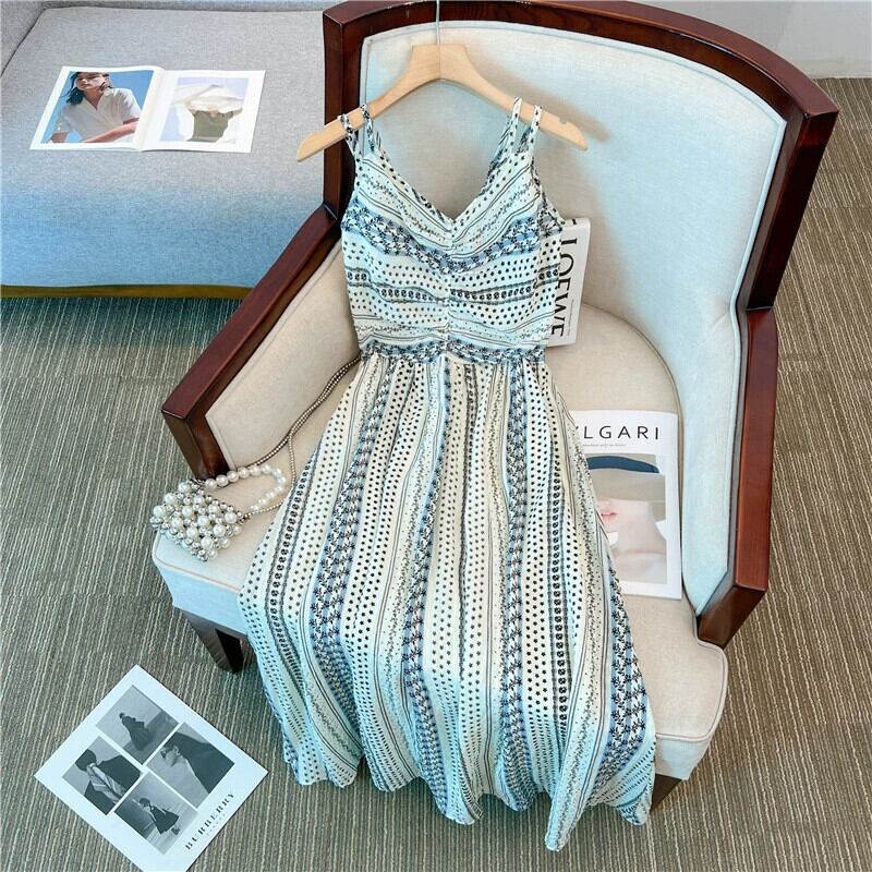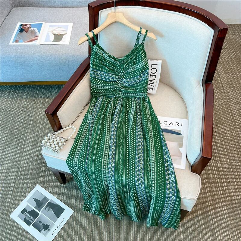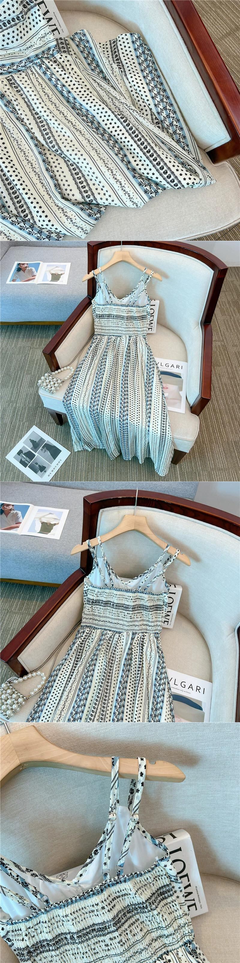 プラスサイズの婦人服 2023 トレンディな夏の新しいファットシスター V ネック体型カバー痩身ドレスプリントミッドレングスサスペンダースカート 大きめサイズ サマー 夏物 Vネック 888413077935569
