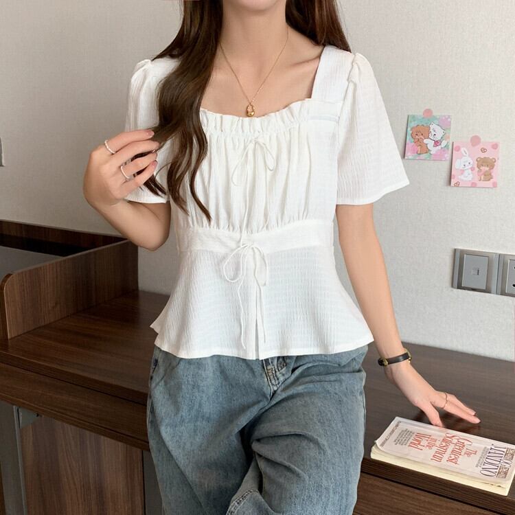 プラスサイズの女性の 2023 夏服脂肪蓮の葉の襟付きお腹をカバーするシャツプリーツ痩身ルーズデザイントップ 大きめサイズ サマー 夏物 888415115286940