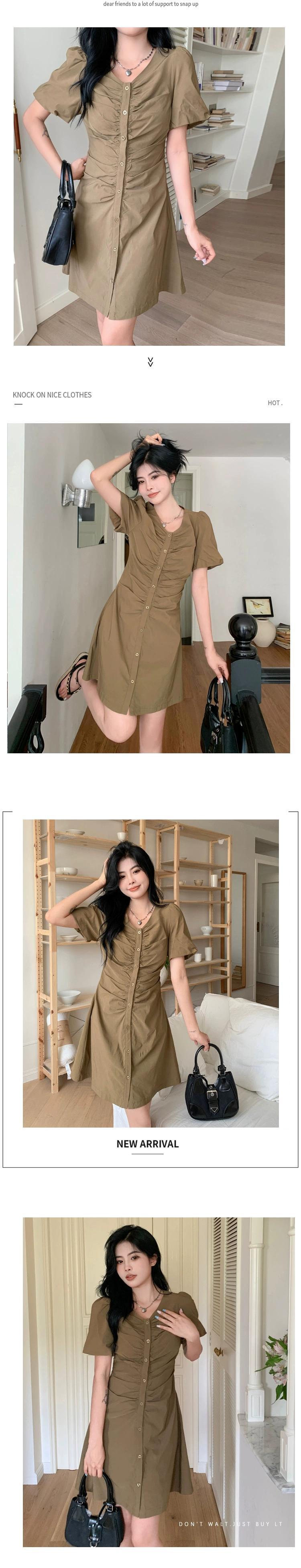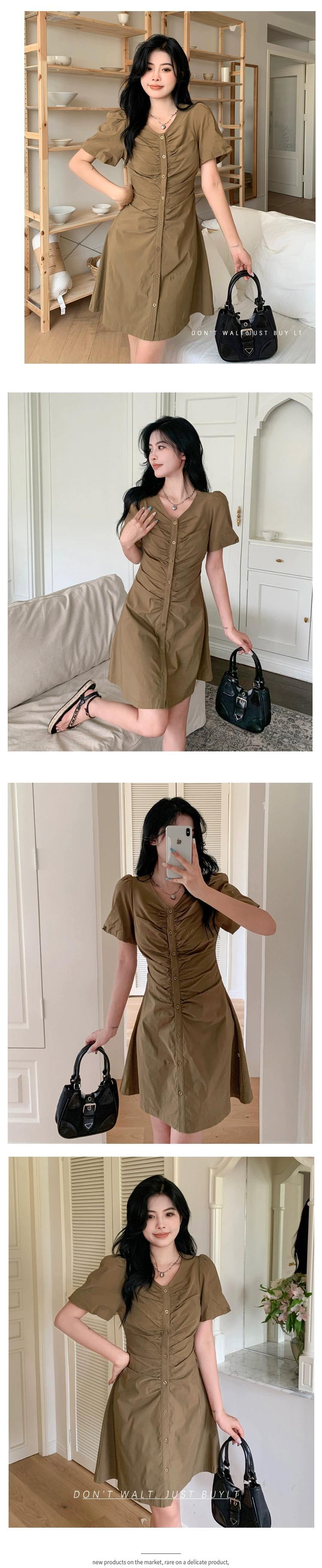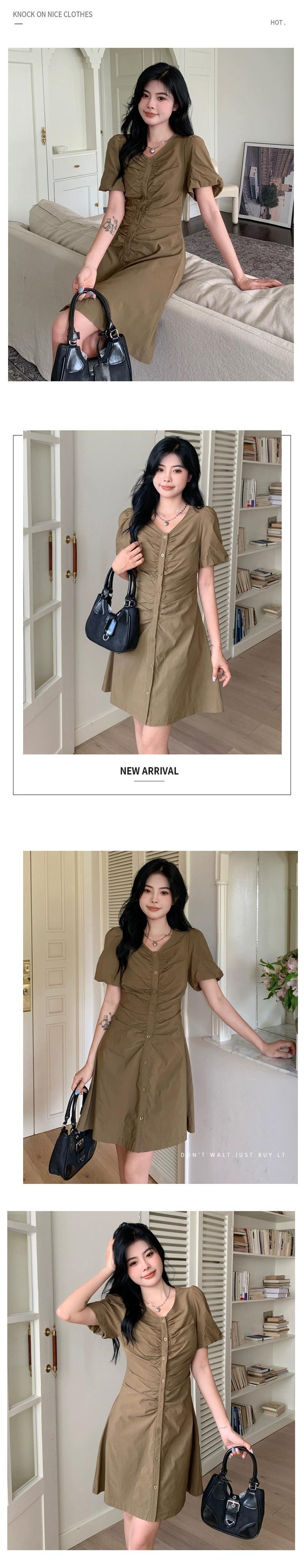 プラスサイズの女性の 2023 夏服ファットニッチデザインフレンチ A ラインスカート V ネックプリーツお腹カバードレス 大きめサイズ サマー 夏物 Vネック Aライン 8884124995555388