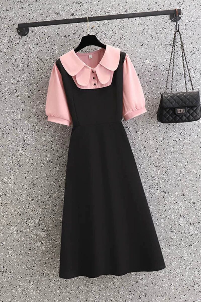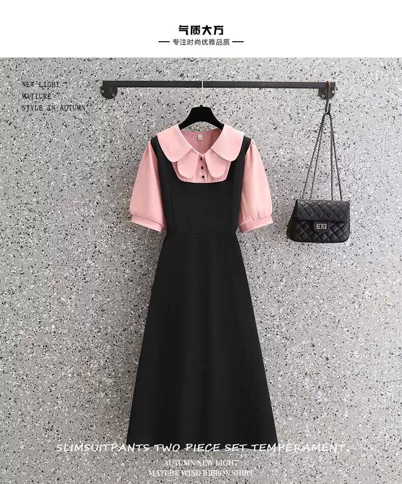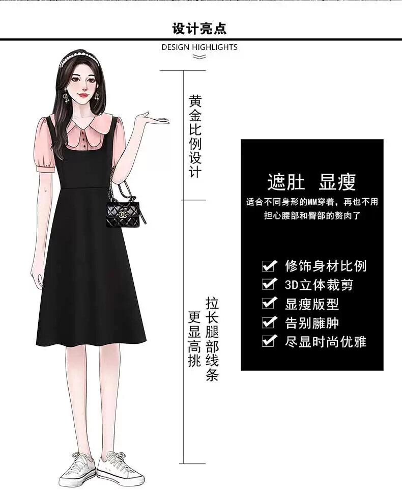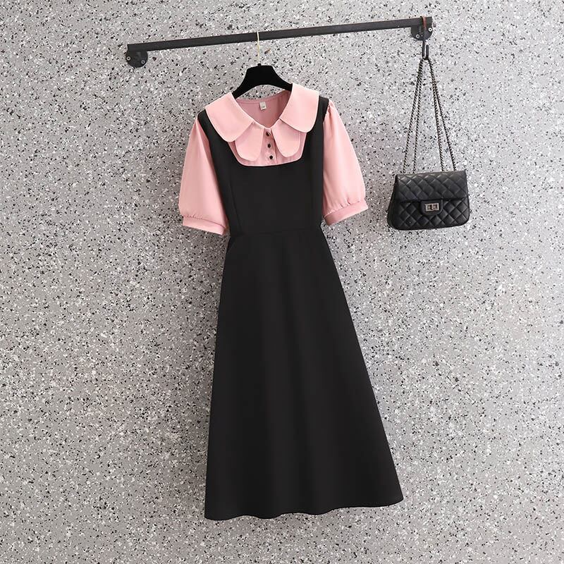 プラスサイズの婦人服 2023 夏の新脂肪姉妹フランスの気質人形の襟偽ツーピースウエストドレス女性 大きめサイズ サマー 夏物 8884187206486589
