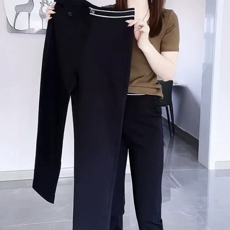 プラスサイズの婦人服 2023 脂肪姉妹夏服新ファッションハイウエストスリムタバコパイプストレートカジュアルパンツ細いパンツ ハイウェスト 大きめサイズ サマー 夏物 8884110810063546