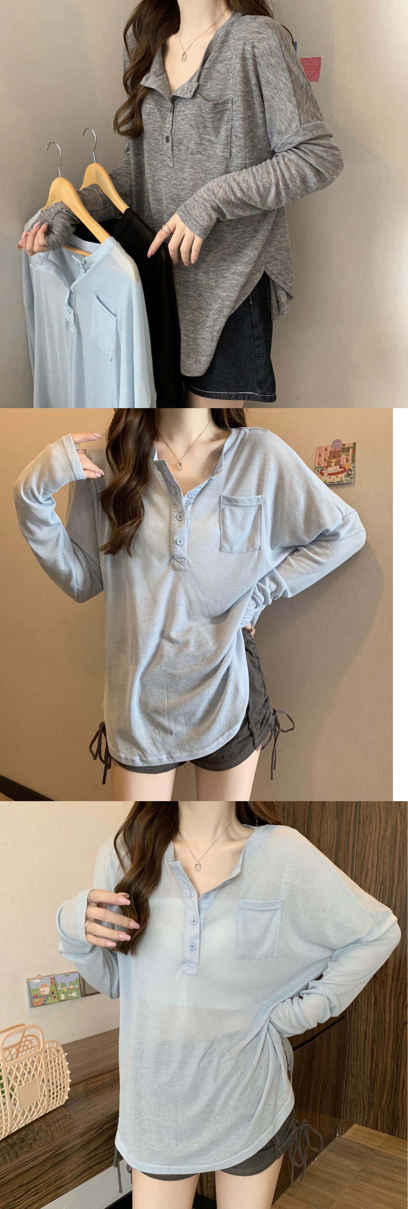 プラスサイズの脂肪の怠惰な V ネック長袖 T シャツ夏痩身ブラウスルーズミッドレングス日焼け止めトップ?? ロング 大きめサイズ サマー 夏物 Vネック Tシャツ 8884190093159373