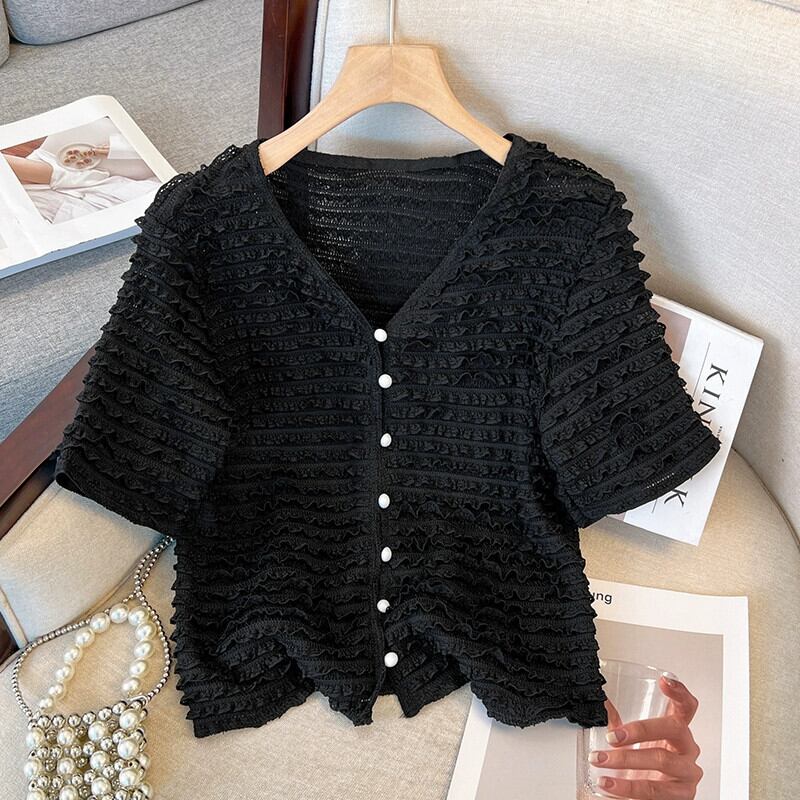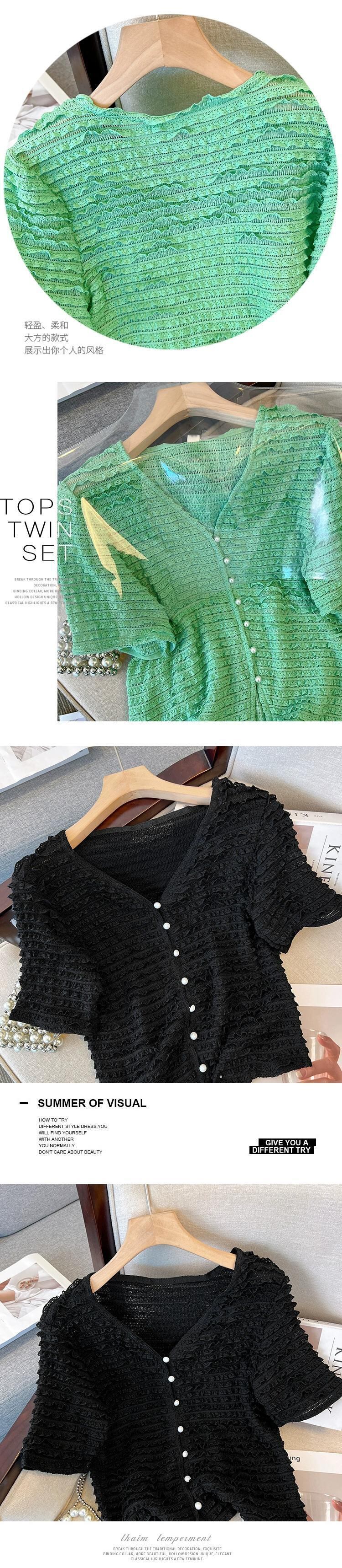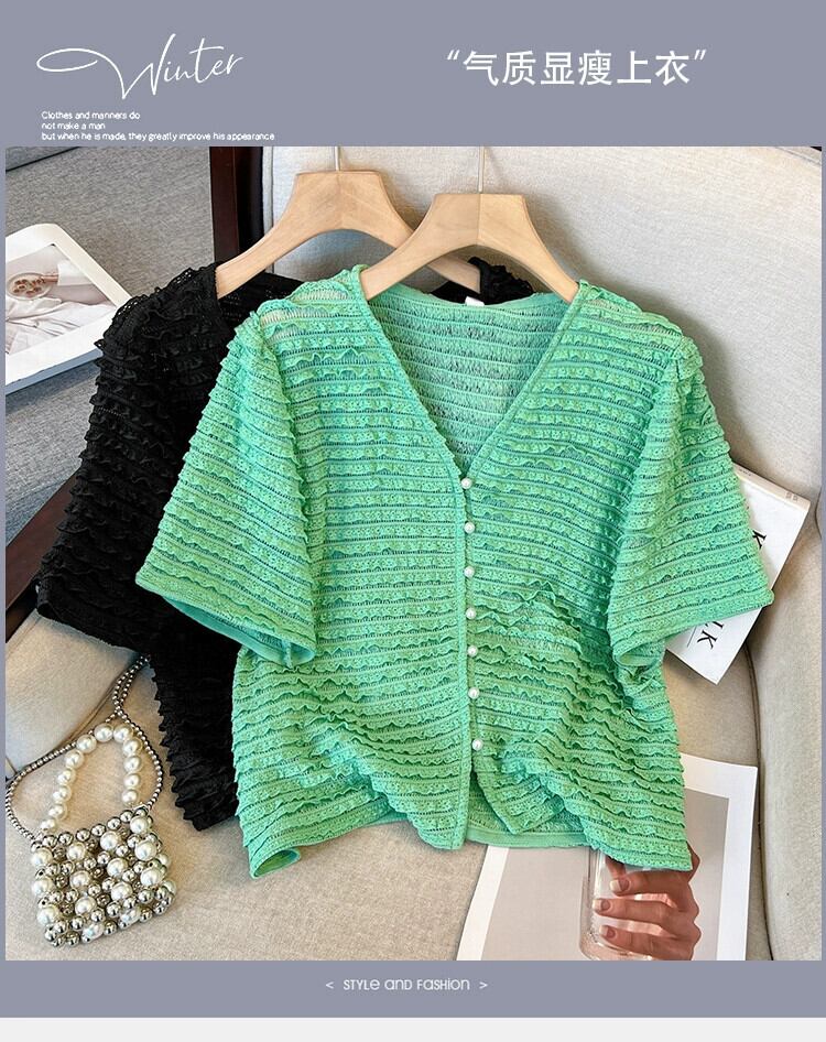プラスサイズの女性の 2023 ファットシスター夏服可能ウエスタンシャツ年齢削減 V ネックテクスチャード半袖トップス レッド 大きめサイズ サマー 夏物 Vネック 8884195835620755